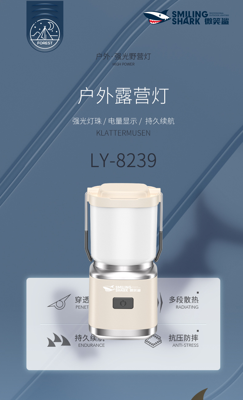 스마일 샤크 야외 캠핑 램프 충전식 텐트 램프 분위기 조명 캠핑 램프 빨간불 모기 구충제 및 모기 킬러 램프스토어 가기