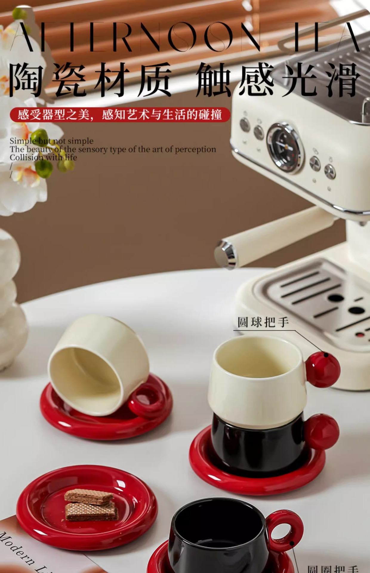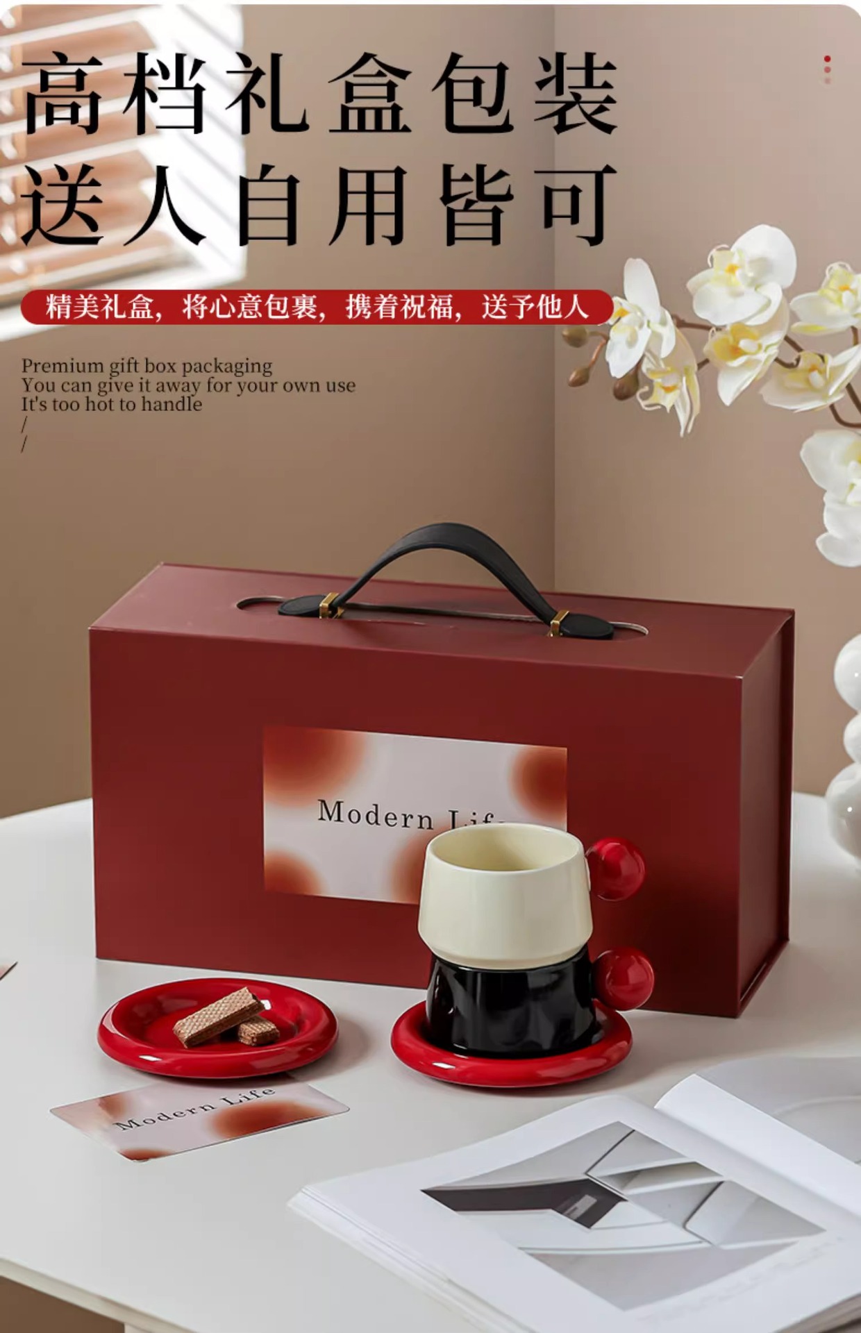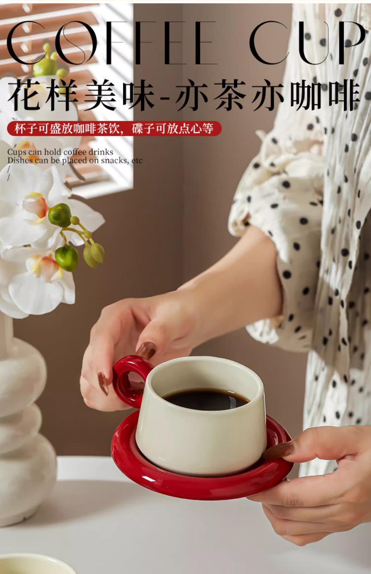 • 볼컵&소서세트 (크림레드+블랙레드) 컵2개, 소서2개 + 선물박스