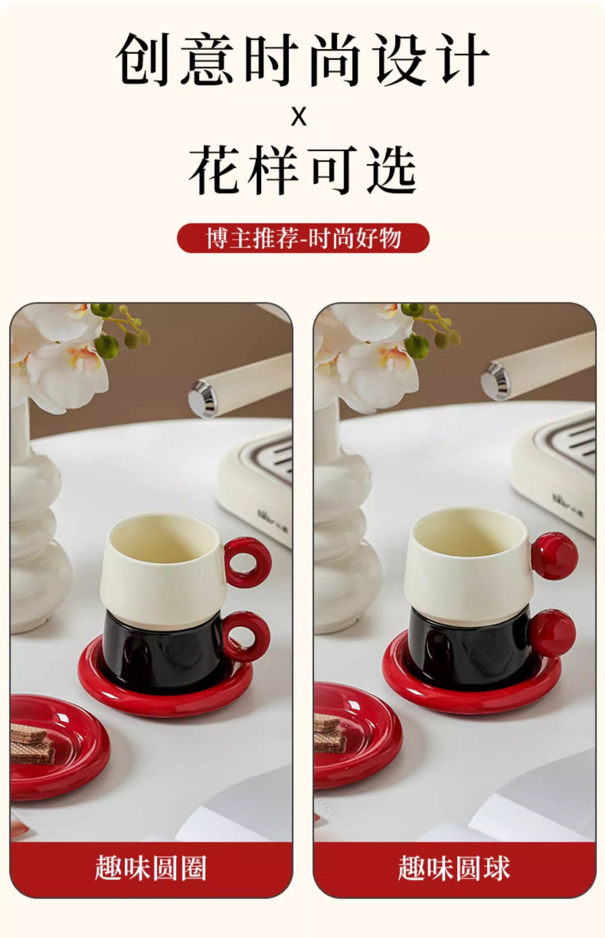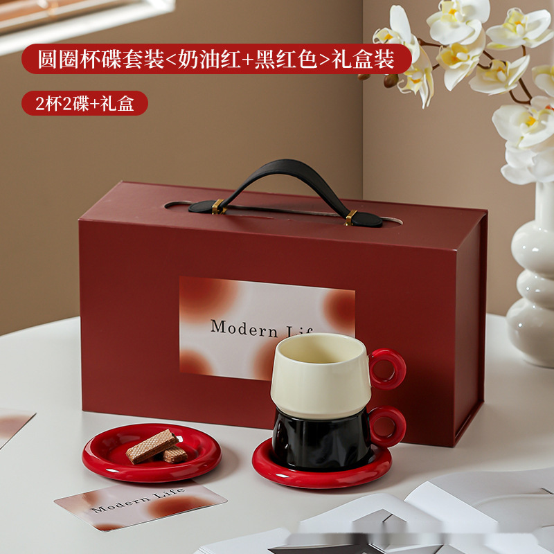 • 서클 컵&소서 세트 (크림레드+블랙레드) 컵 2개, 소서 2개 + 선물박스