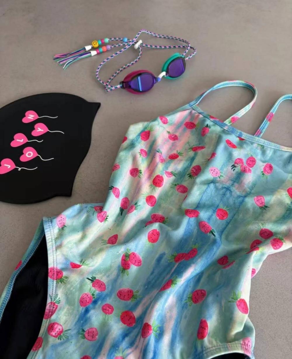 순수한 욕망 바람 귀여운 작은 딸기 소녀의 결합 된 삼각형 블루 수영 세트 여자 레이싱 스포츠 프로 수영장 여름스토어 가기