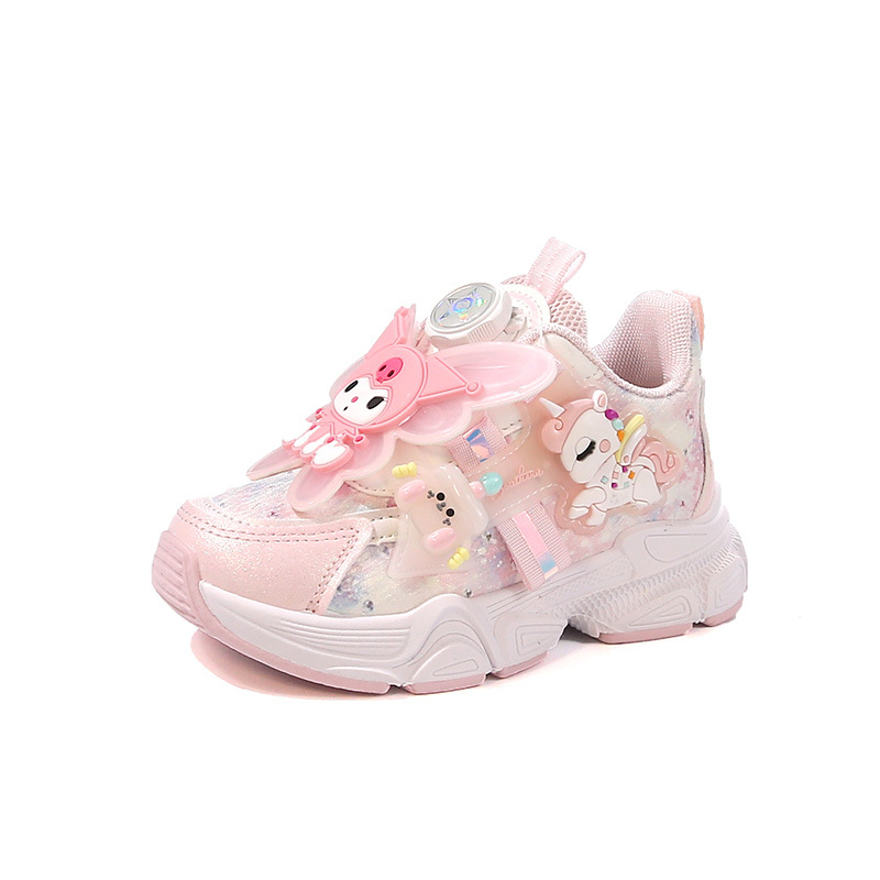 여아 가죽 쿠로미 버튼 슈즈, 미끄럼 방지 두꺼운 밑창 아빠 신발, 봄 가을 신상 아동용 부드러운 밑창 아동화, 트렌디하고 패셔너블