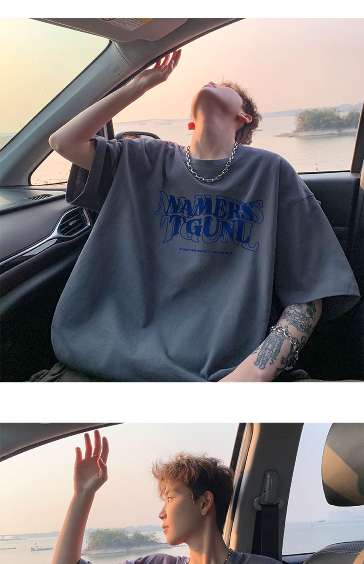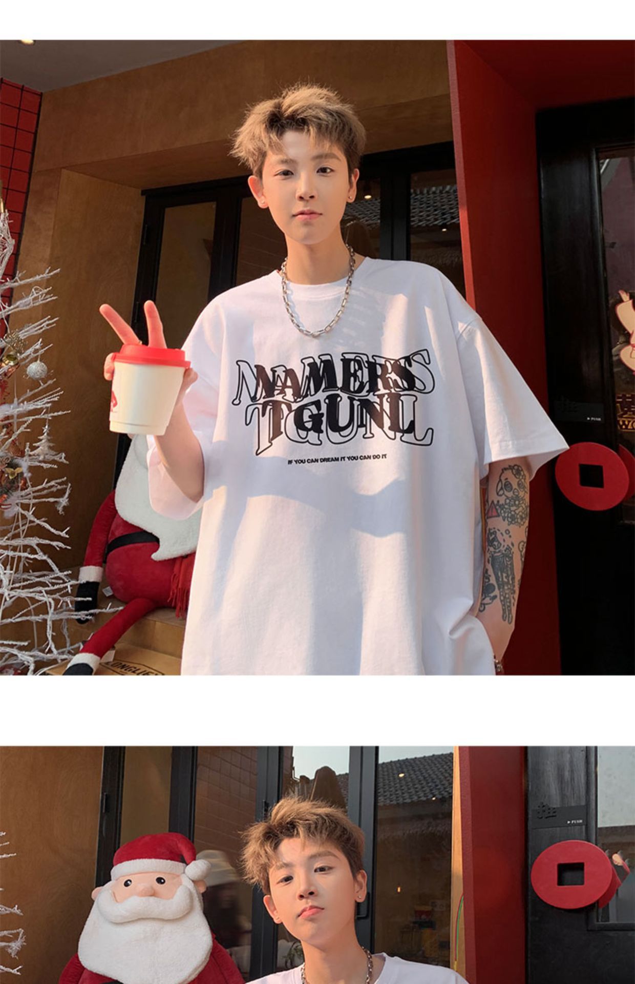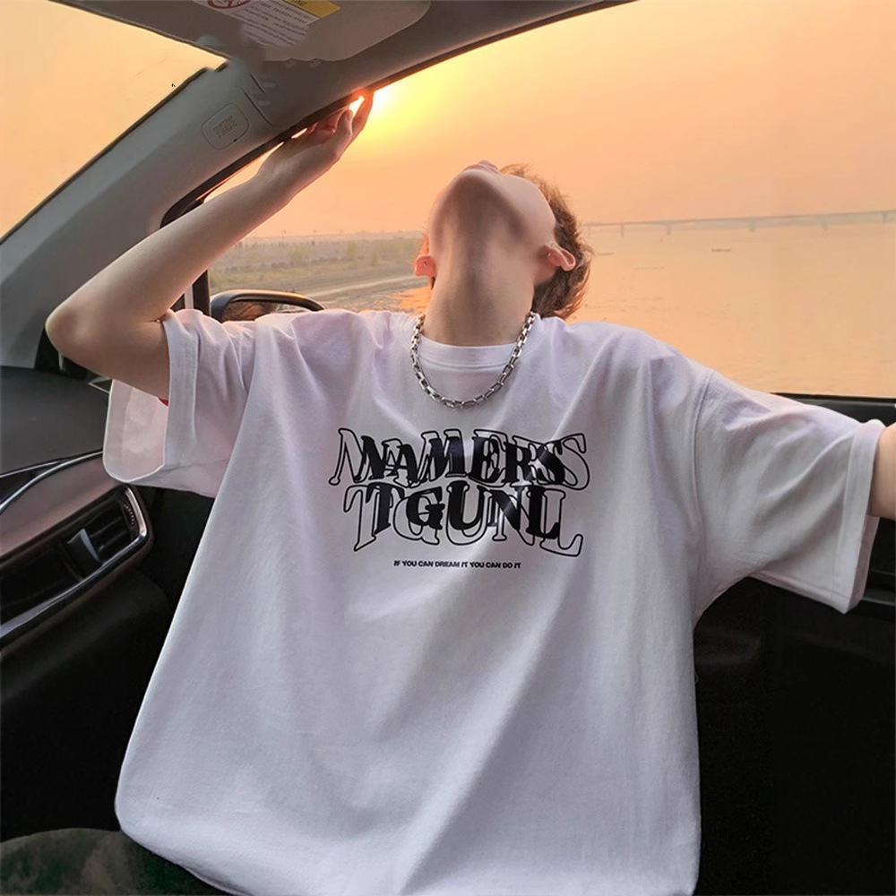 2025년 여름 남성용 화이트 코튼 반팔 티셔츠 새로운 미국 트렌드 루즈 캐주얼 반팔 티셔츠 탑스토어 가기