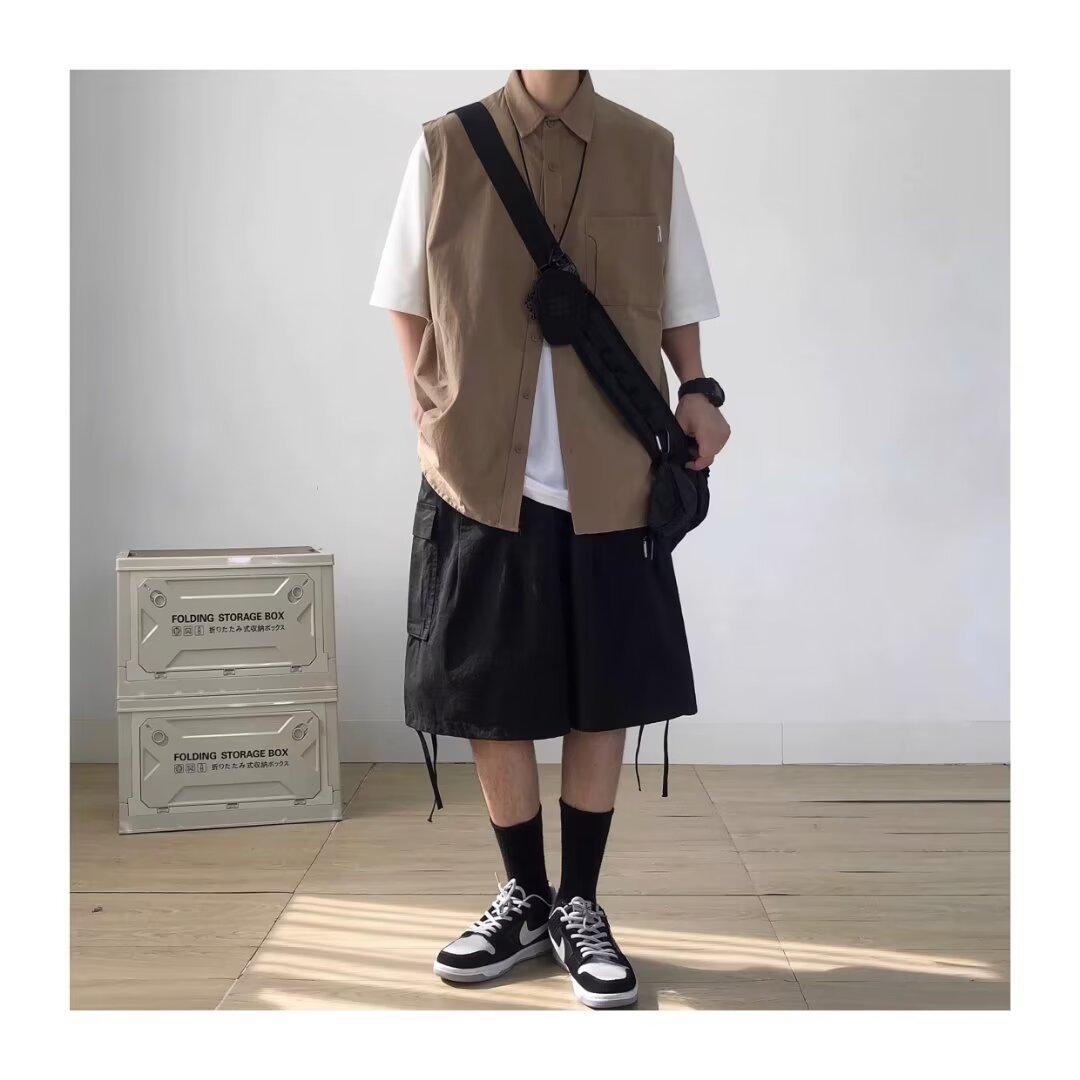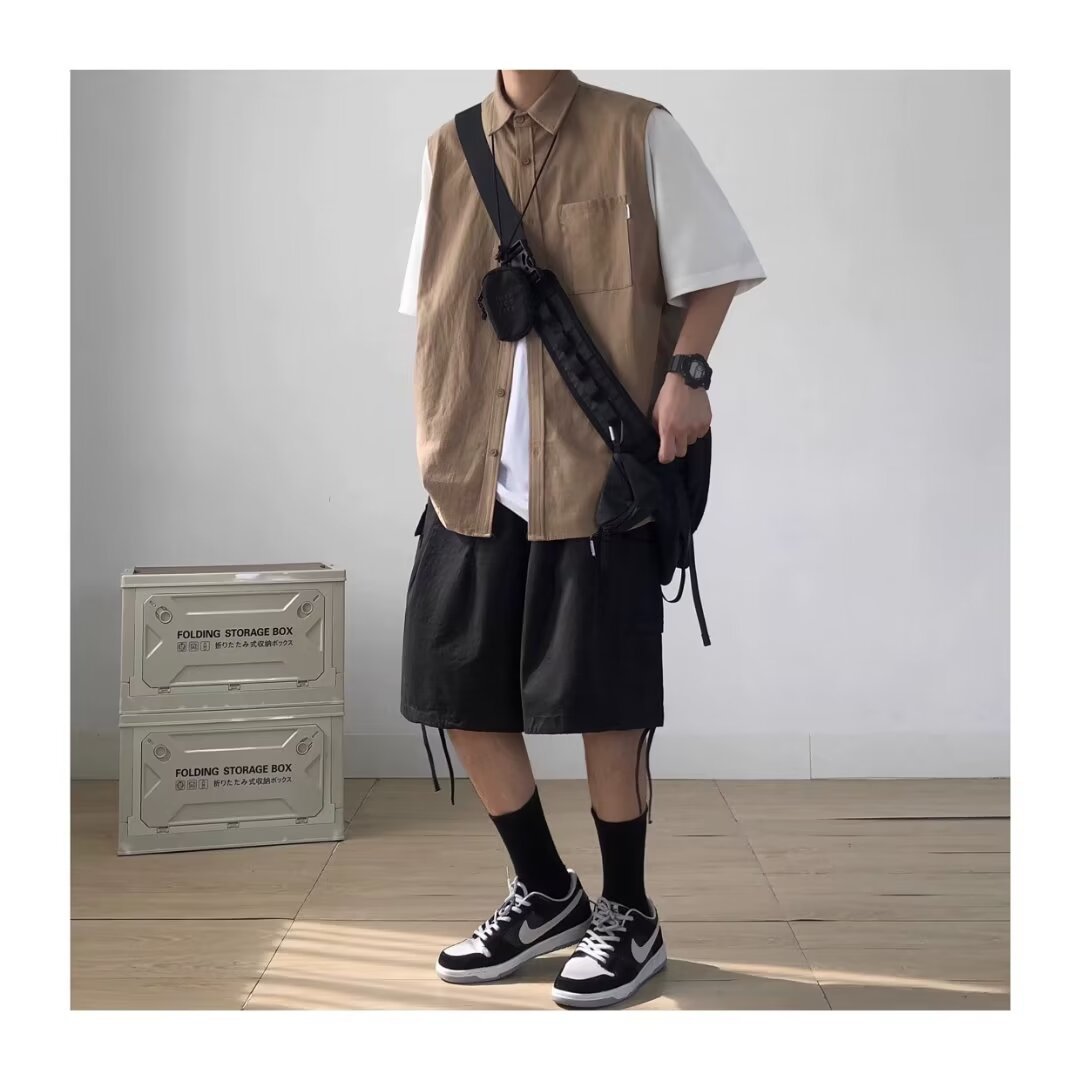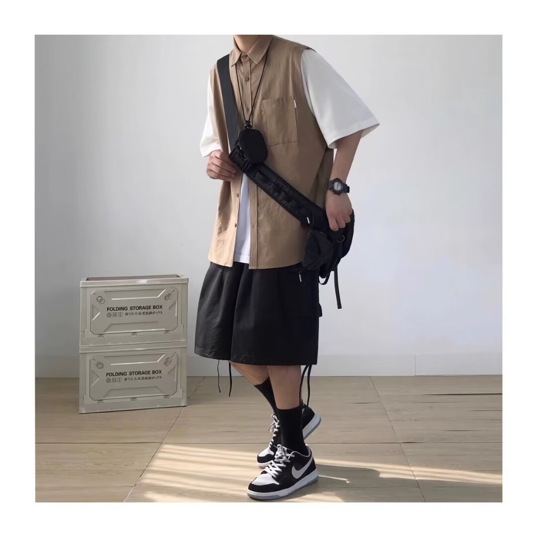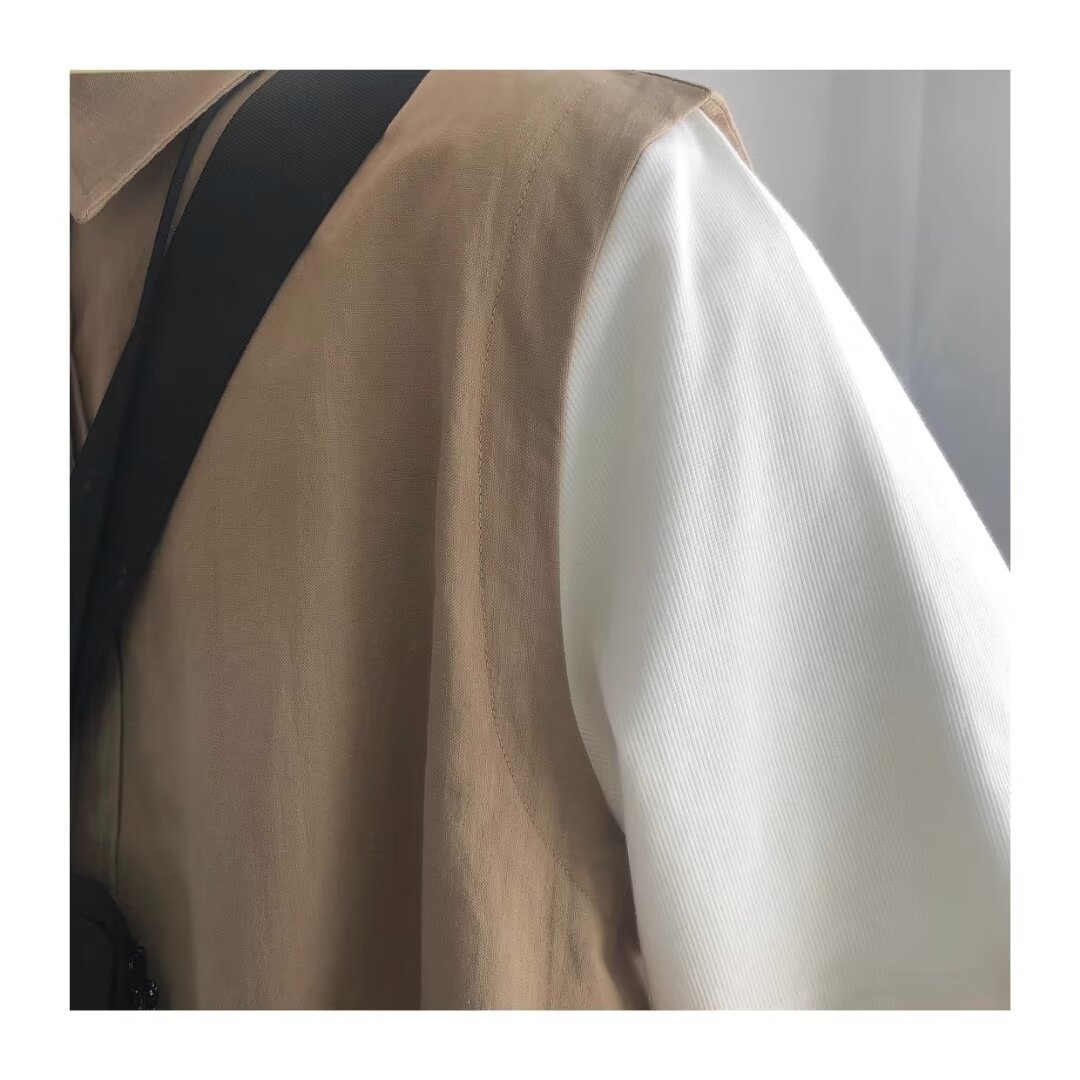 2025 뉴 여름 일본 복고풍 가짜 투피스 셔츠 반팔 탑 티셔츠 디자인 루즈 캐주얼 다재다능한 남성