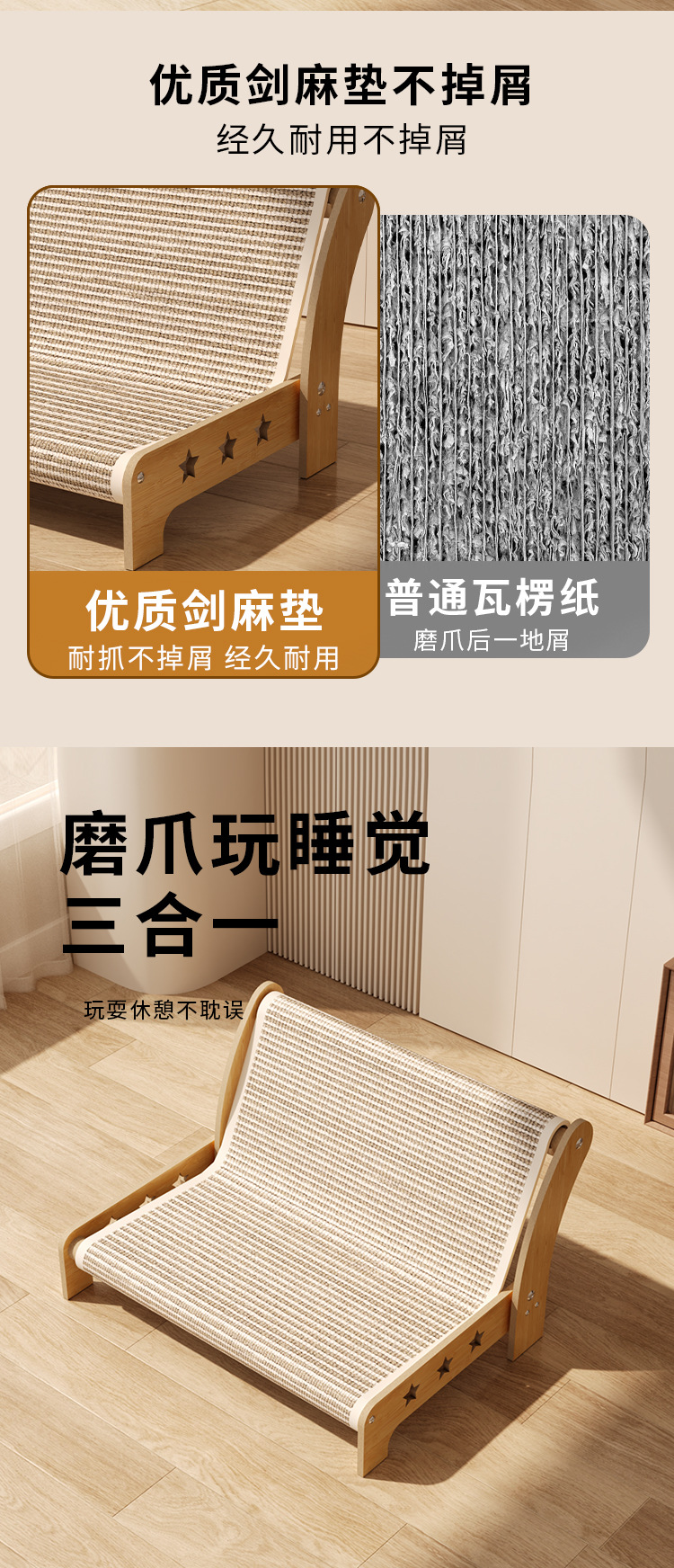 사마귀고양이 스크래치보드, 초대형, 부스러기 없는, 내마모성, 일체형 긴의자 소파, 고양이 발톱 연마 도구, 초대형 고양이 발톱 보드, 고양이 둥지스토어 가기