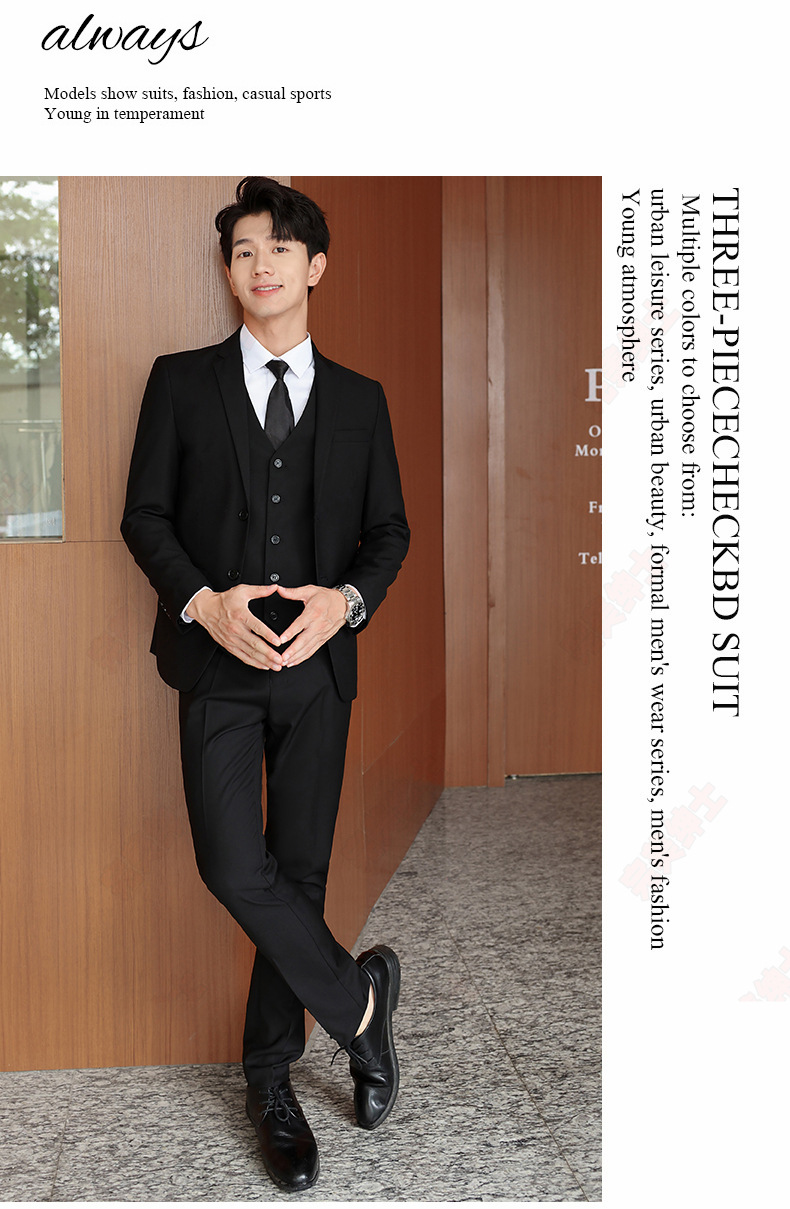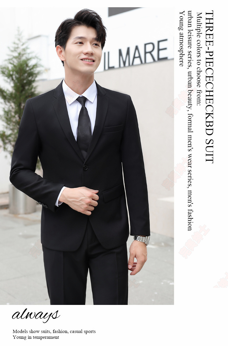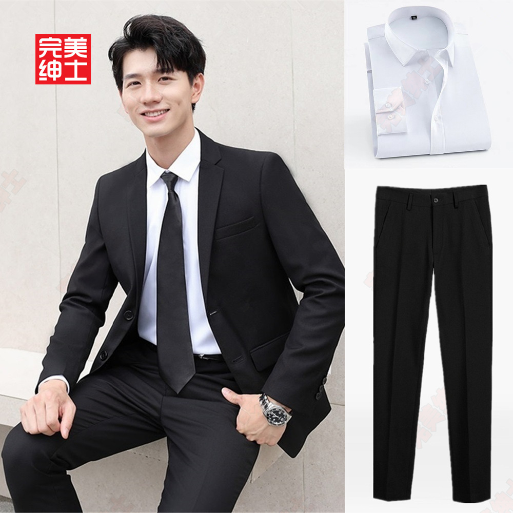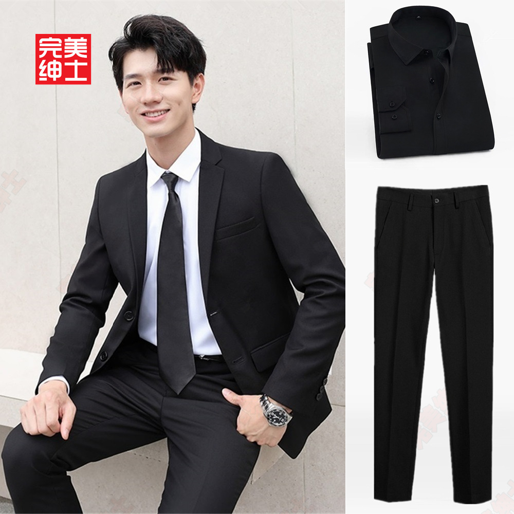 • 검은색 정장 + 검은색 바지 + 흰색 셔츠