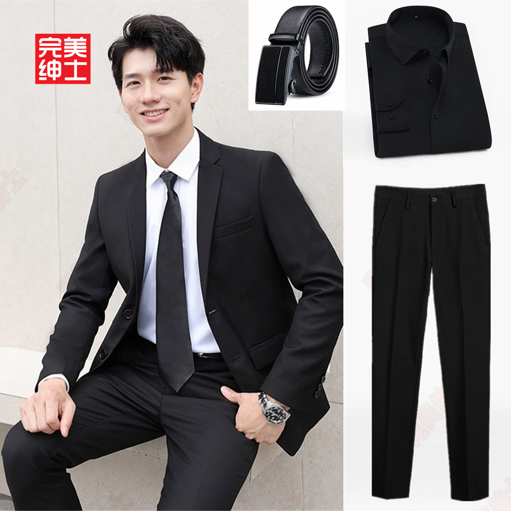 • 검은색 정장 + 검은색 바지 + 검은색 셔츠 + 벨트