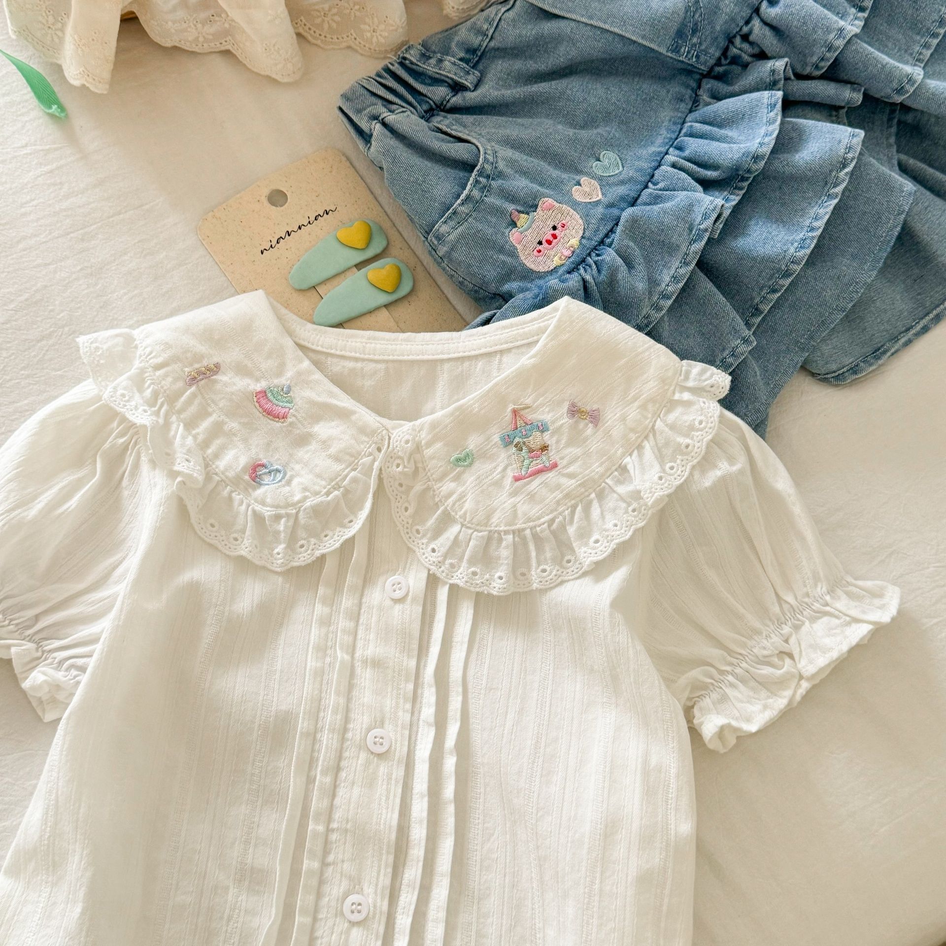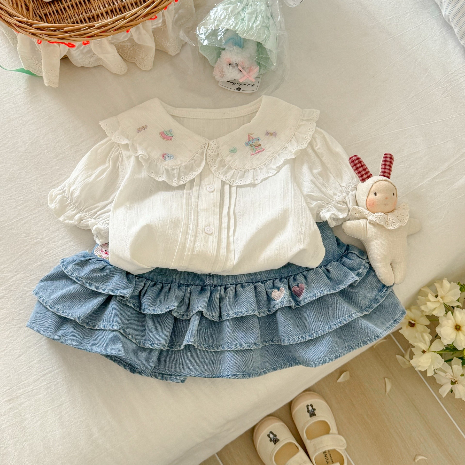 Tongxingyuan 여자 여름 셔츠 소녀 아기의 여름 서양식 한국 셔츠 어린이 올매치 탑 투피스 세트