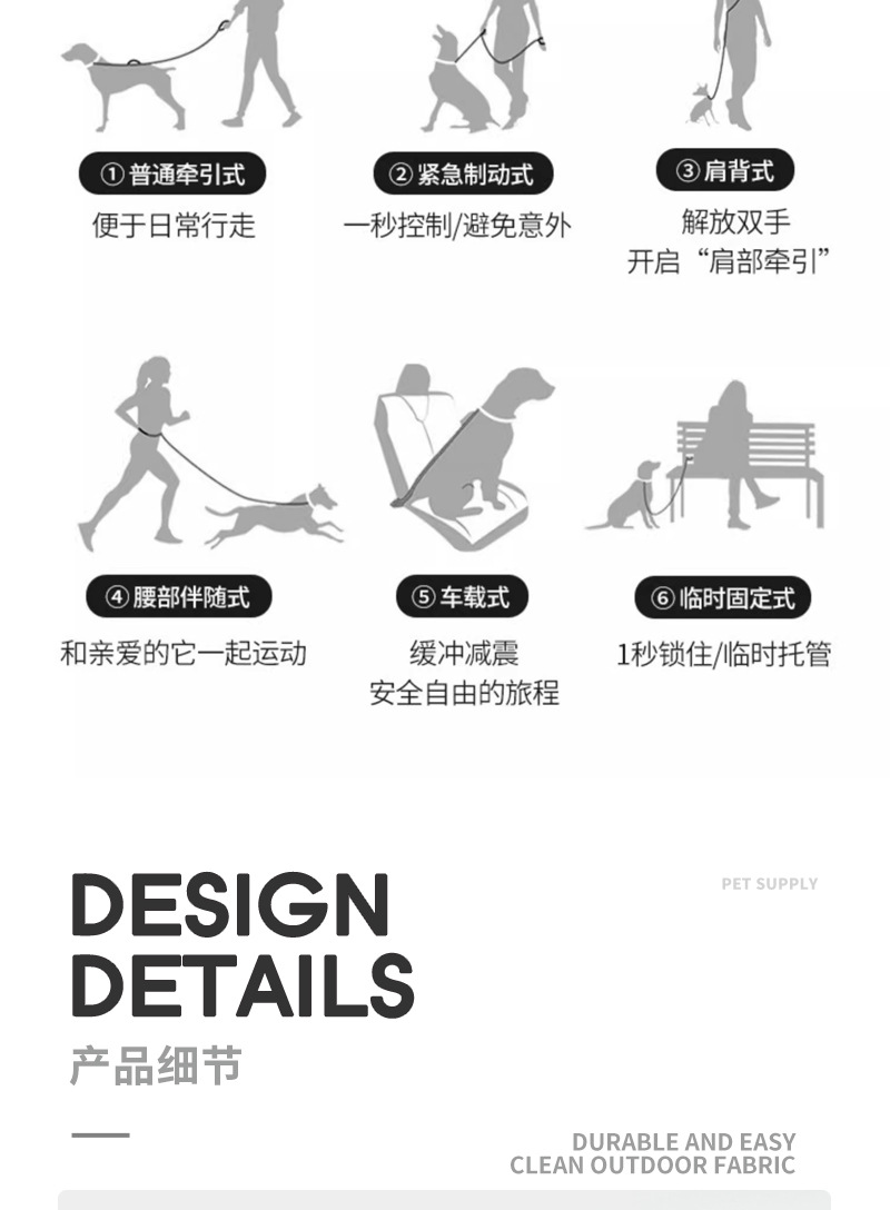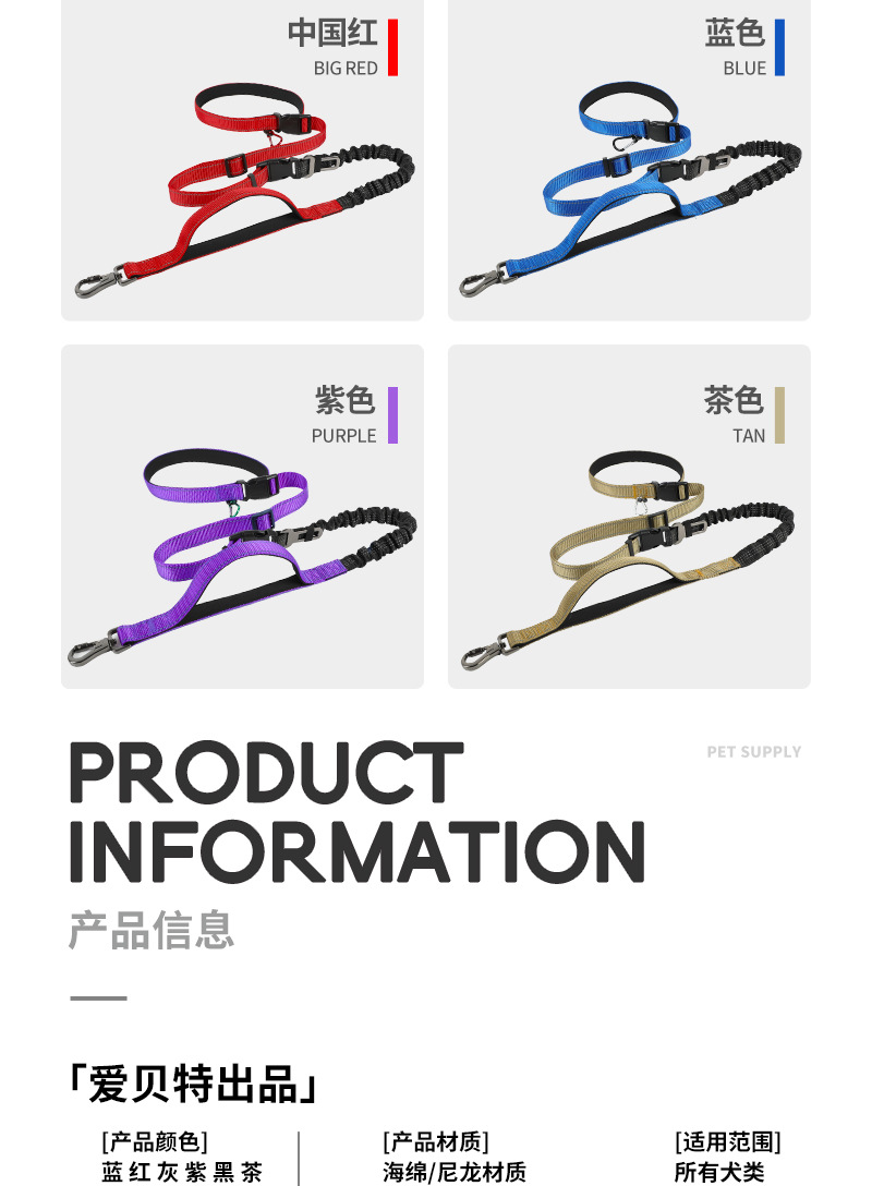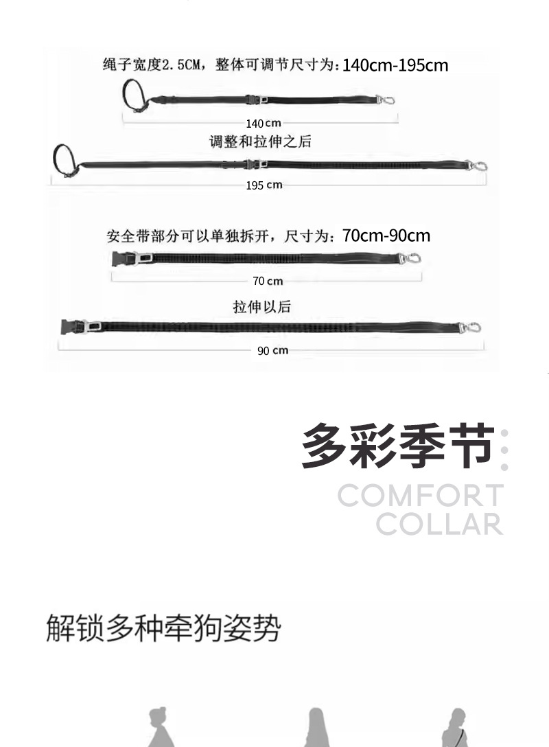 국경 간 새로운 Amazon 다기능 견인 로프 방폭형 개 산책 로프 대각선 자동차 장착형 중형 및 대형견 전용스토어 가기