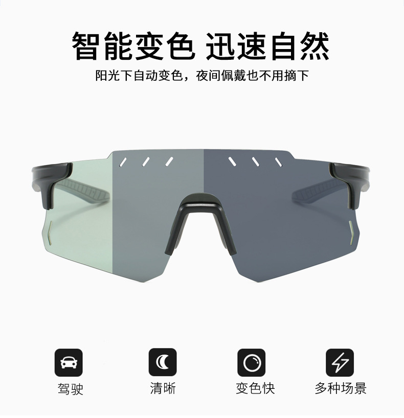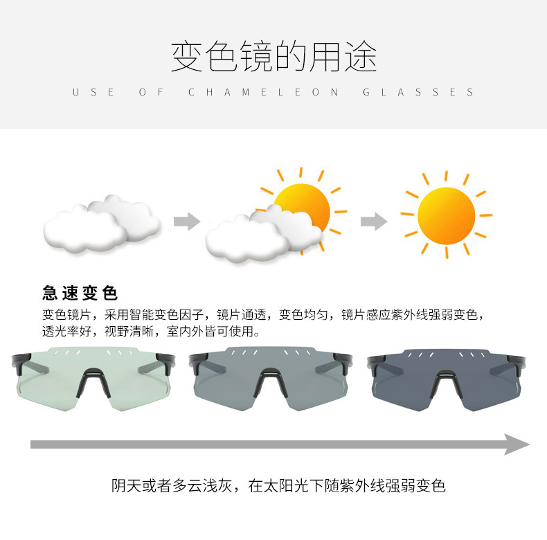 新款户外运动骑行眼镜欧美自行车变色太阳镜男女连体跨境运动墨镜