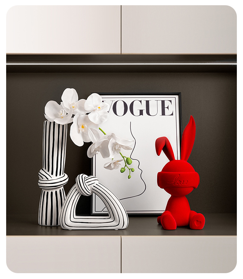 • 긴귀토끼 레드 + 스트라이프 매듭 조합 꽃꽂이