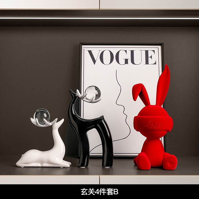 Beihanmei 토끼 앉아있는 장식품 크리 에이 티브 인형 거실 데스크탑 입구 현관 TV 캐비닛 하이 엔드 장식스토어 가기