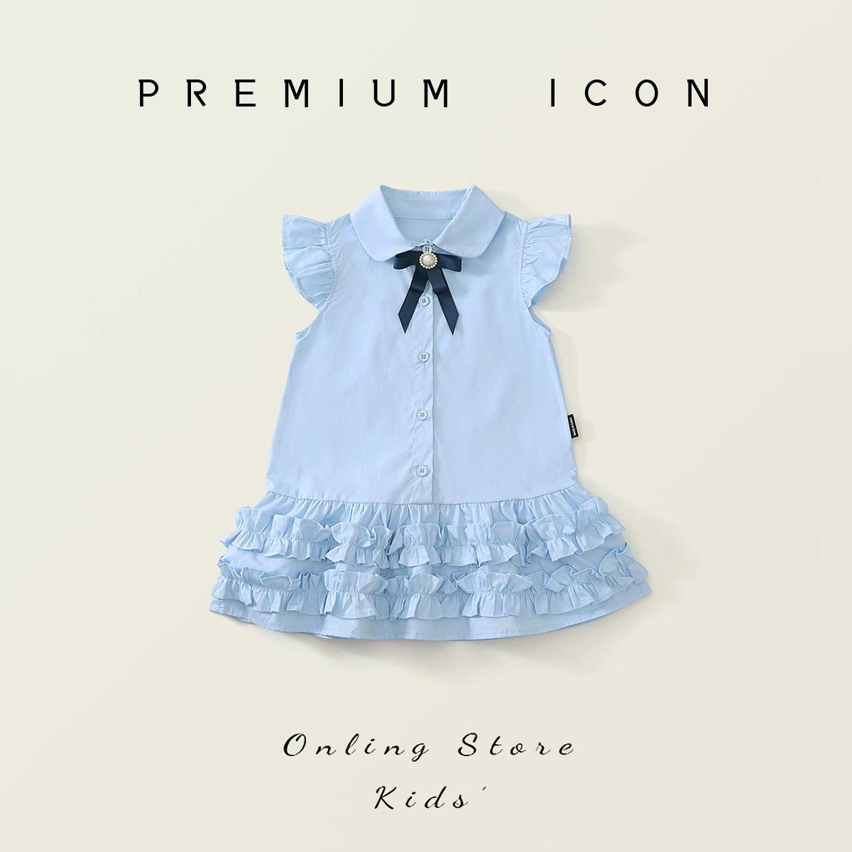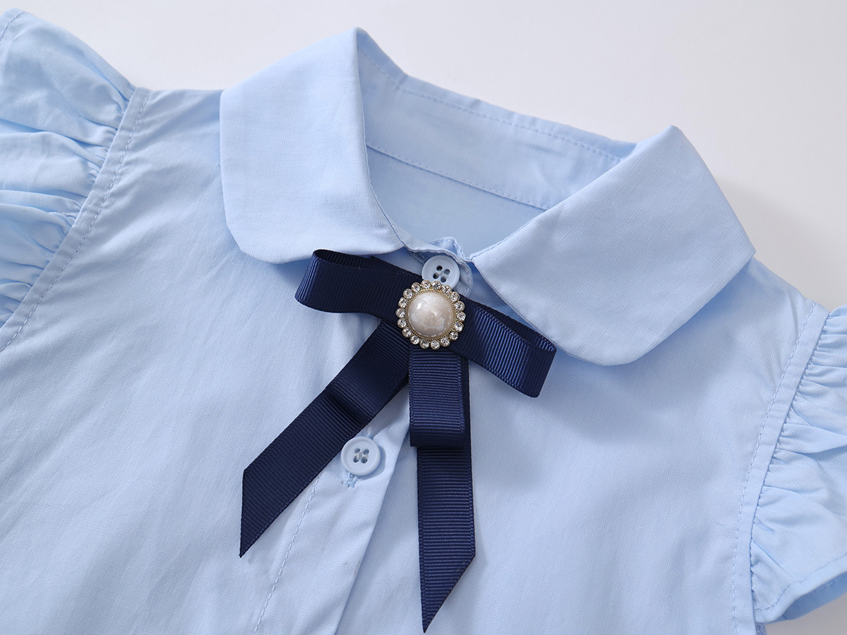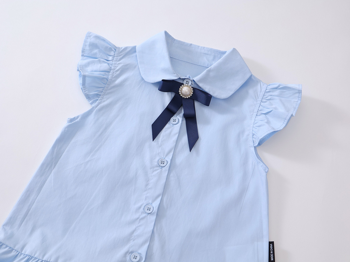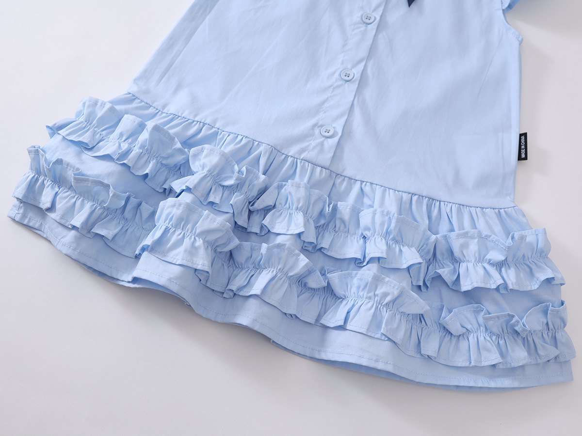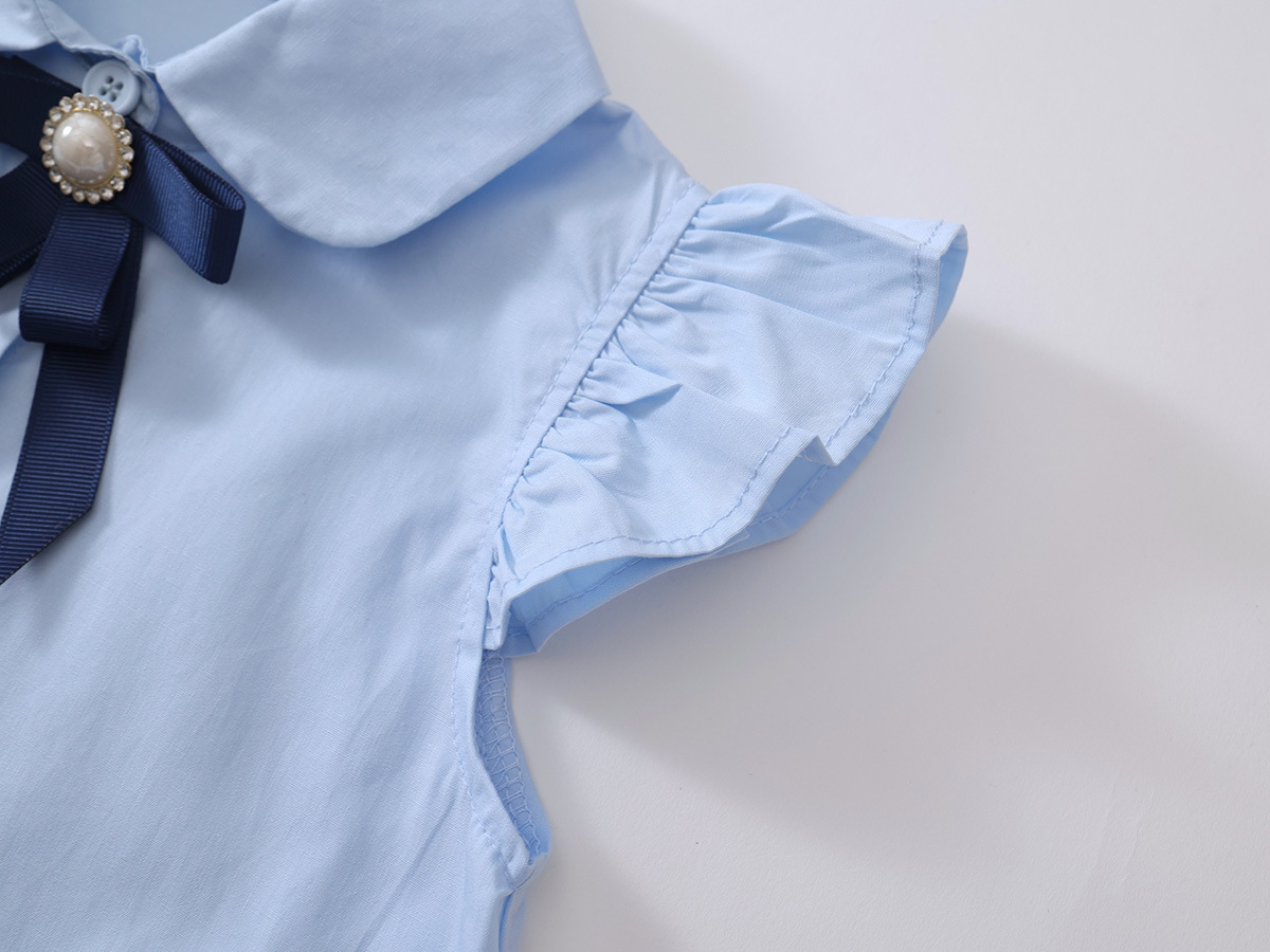 소녀 블루 아카데미 스타일 작은 비행 소매 원피스 2025 여름 새로운 아기 소녀 한국 스타일 활 치마스토어 가기