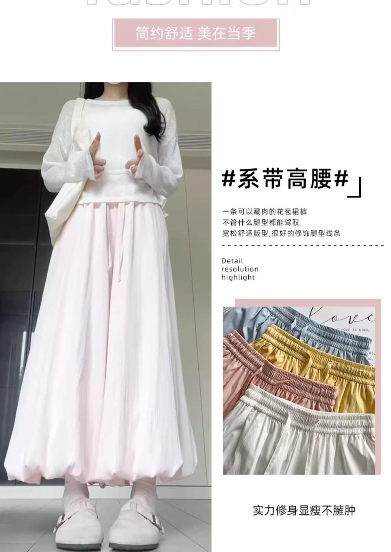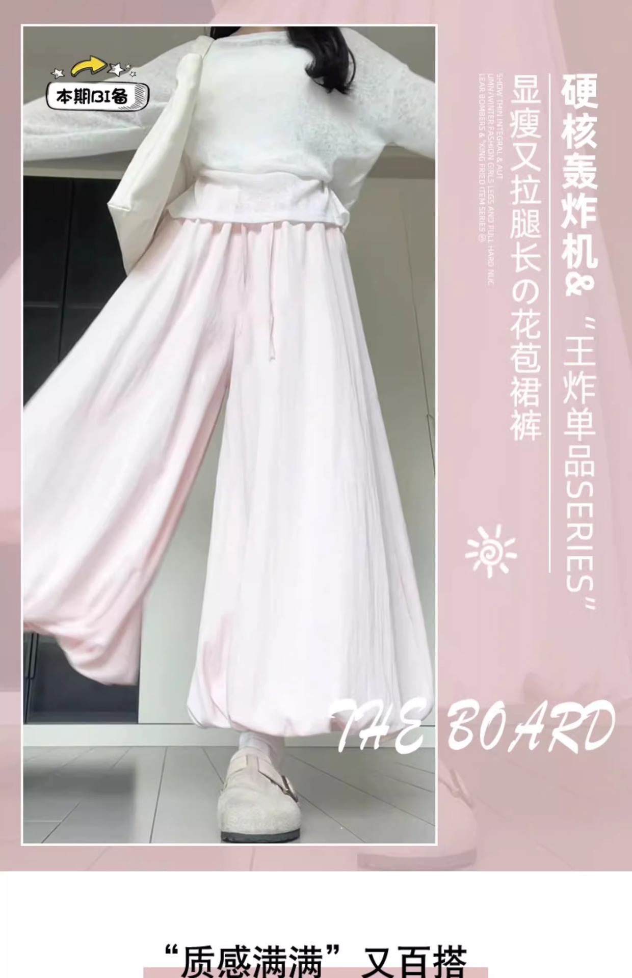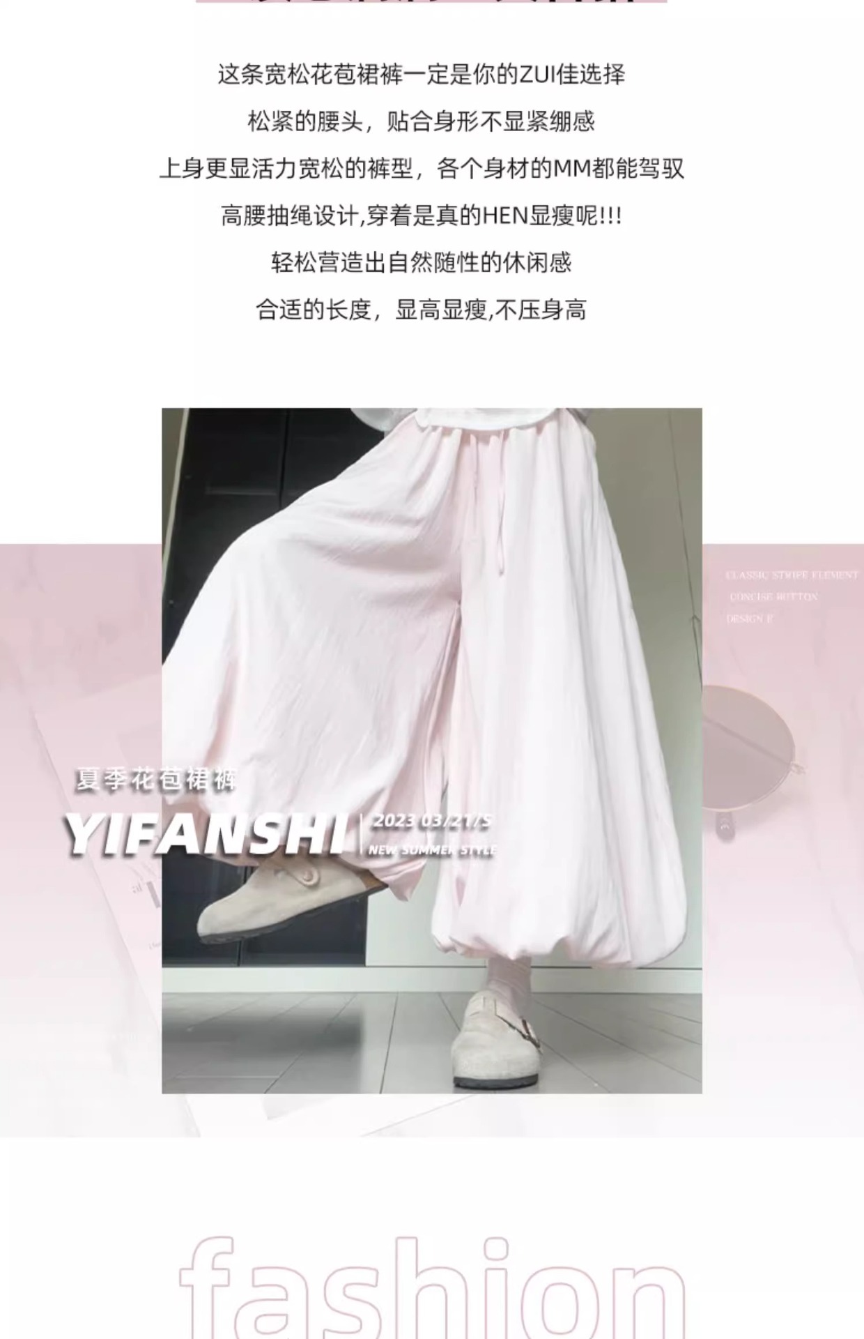핑크 꽃 버드 원피스 바지 여성 여름 2025 새로운 높은 허리 슬리밍 블루머스 느슨한 캐주얼 와이드 다리 바지스토어 가기