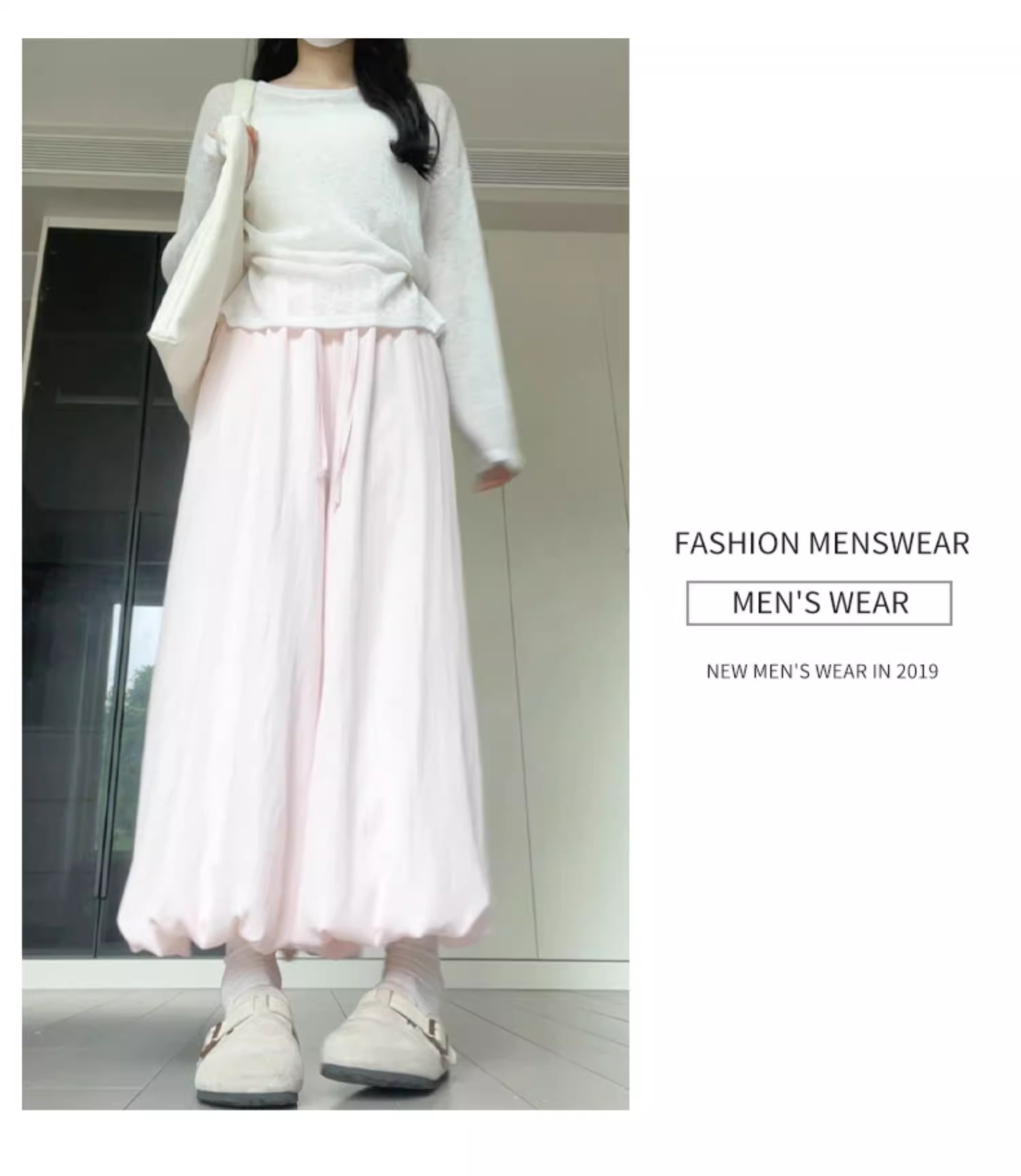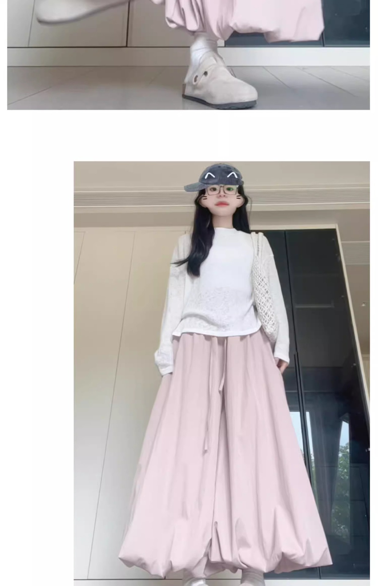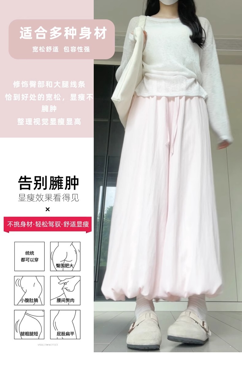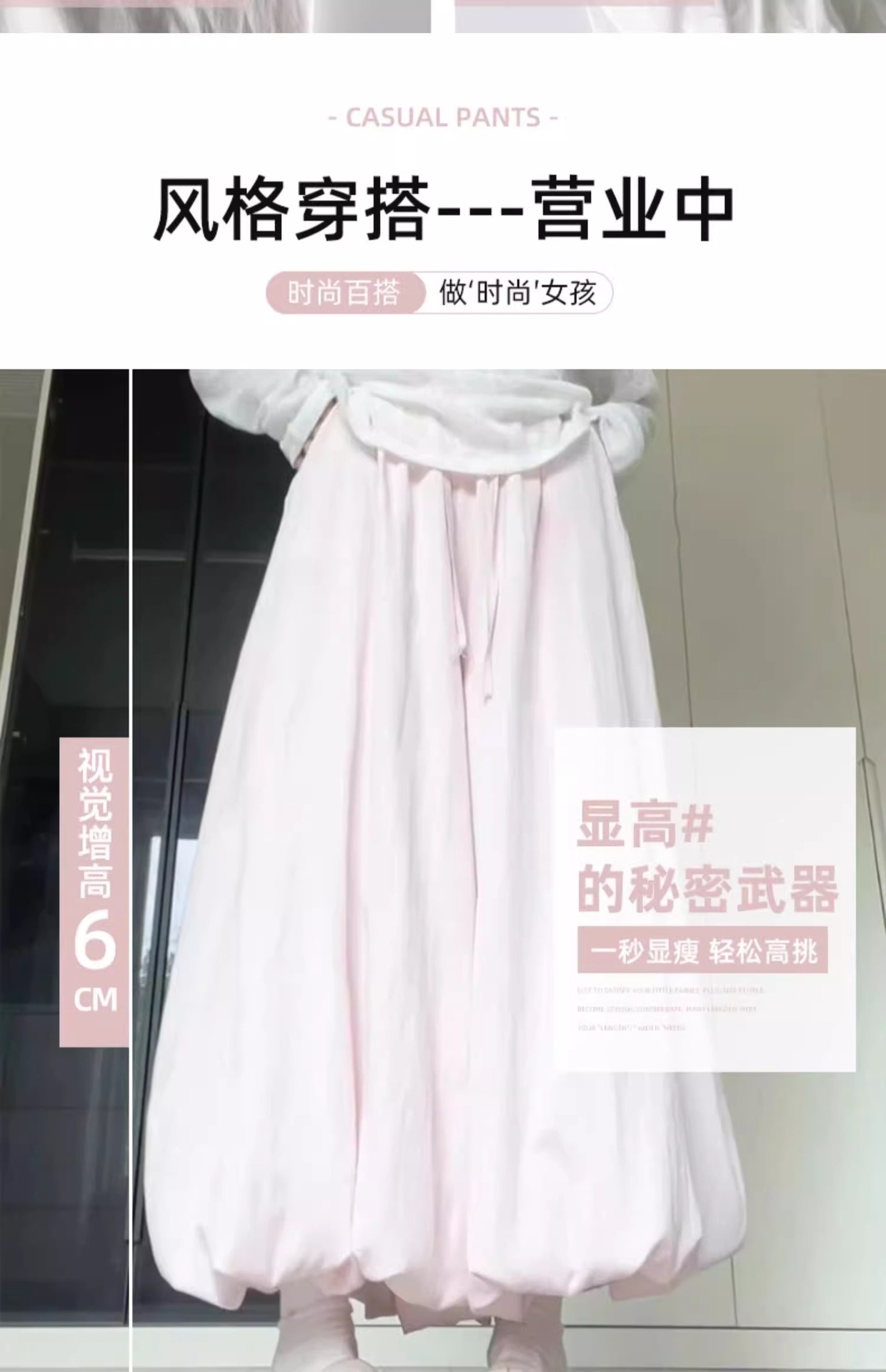 핑크 꽃 버드 원피스 바지 여성 여름 2025 새로운 높은 허리 슬리밍 블루머스 느슨한 캐주얼 와이드 다리 바지스토어 가기