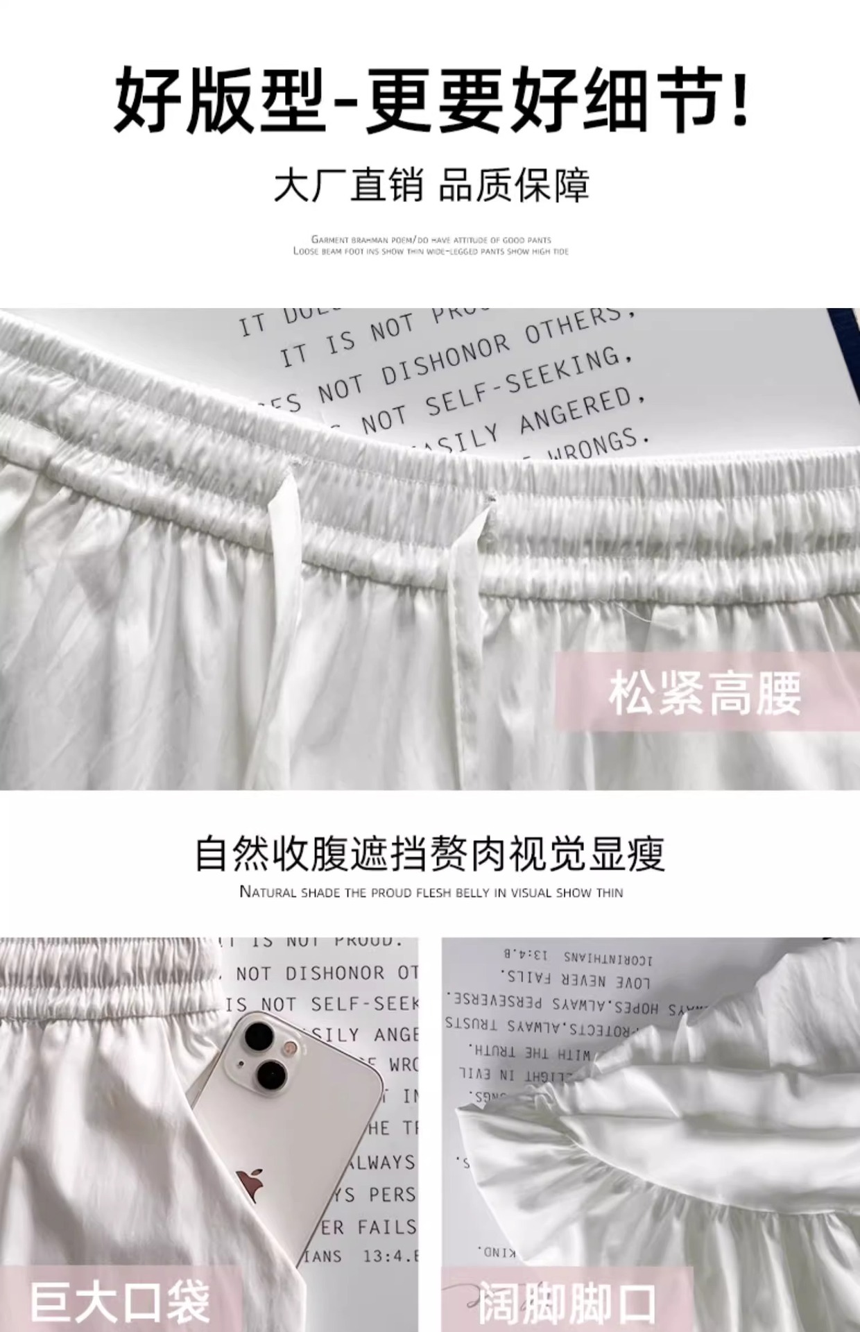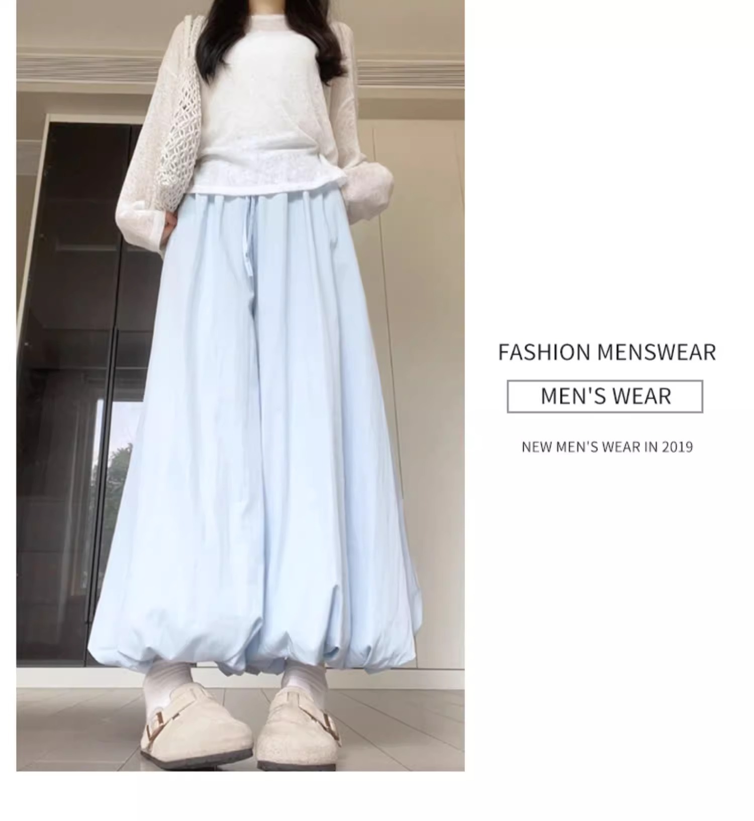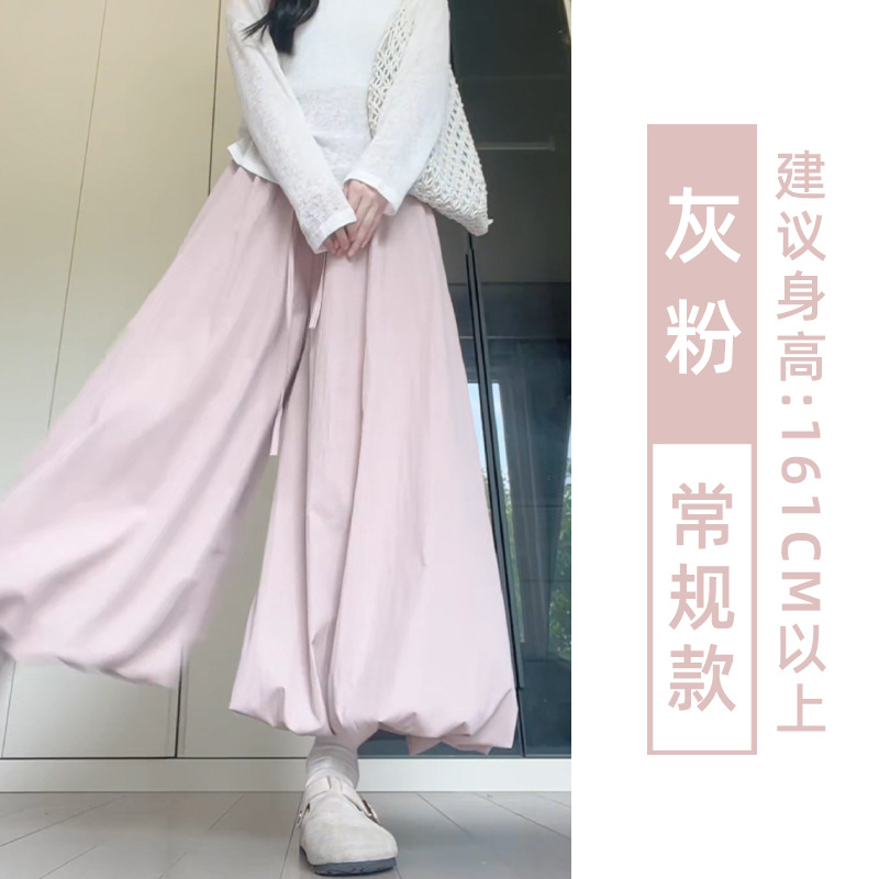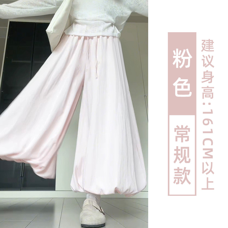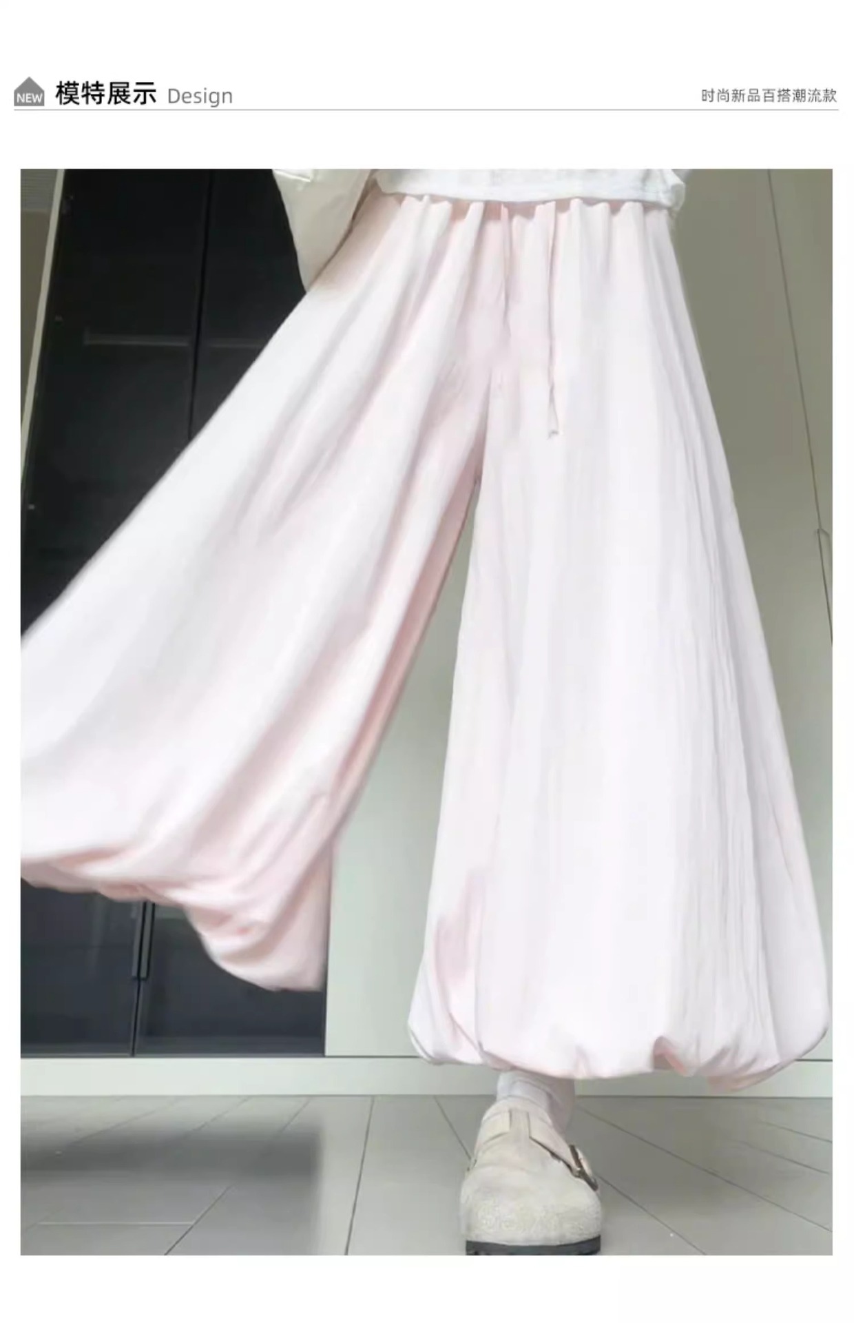 핑크 꽃 버드 원피스 바지 여성 여름 2025 새로운 높은 허리 슬리밍 블루머스 느슨한 캐주얼 와이드 다리 바지