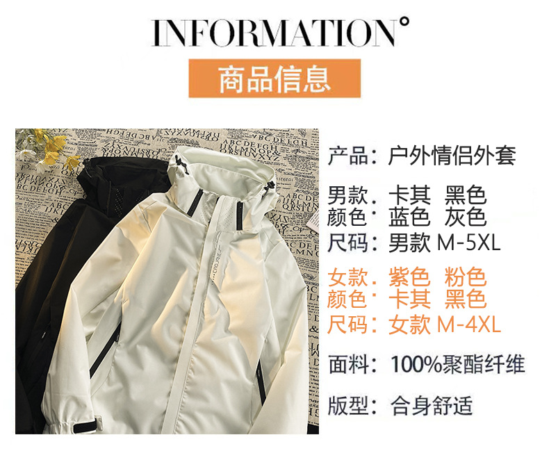 남성과 여성을위한 커플의 야외 스포츠 재킷 방수 방풍 얇은 캐주얼 재킷 봄과 가을 재킷