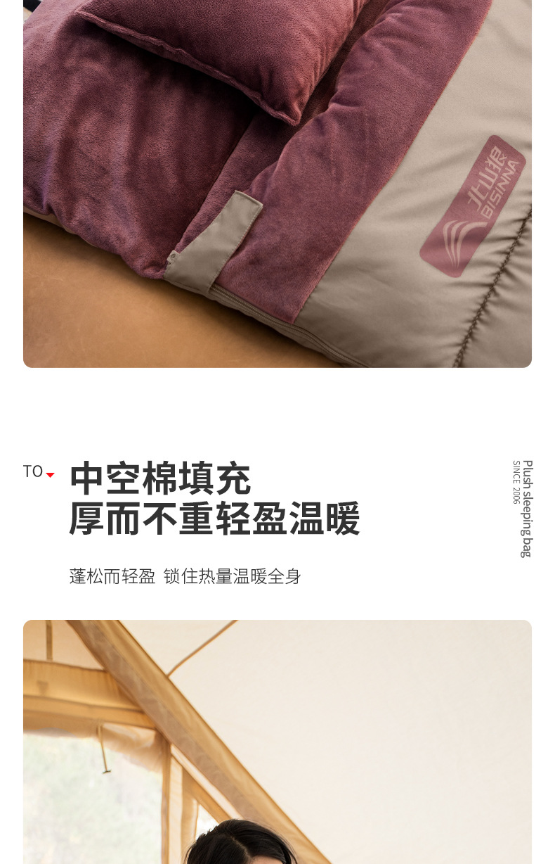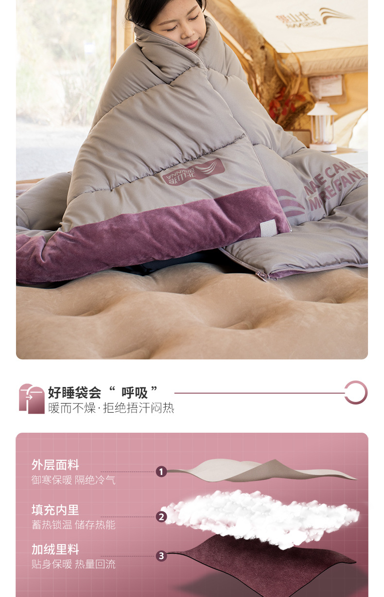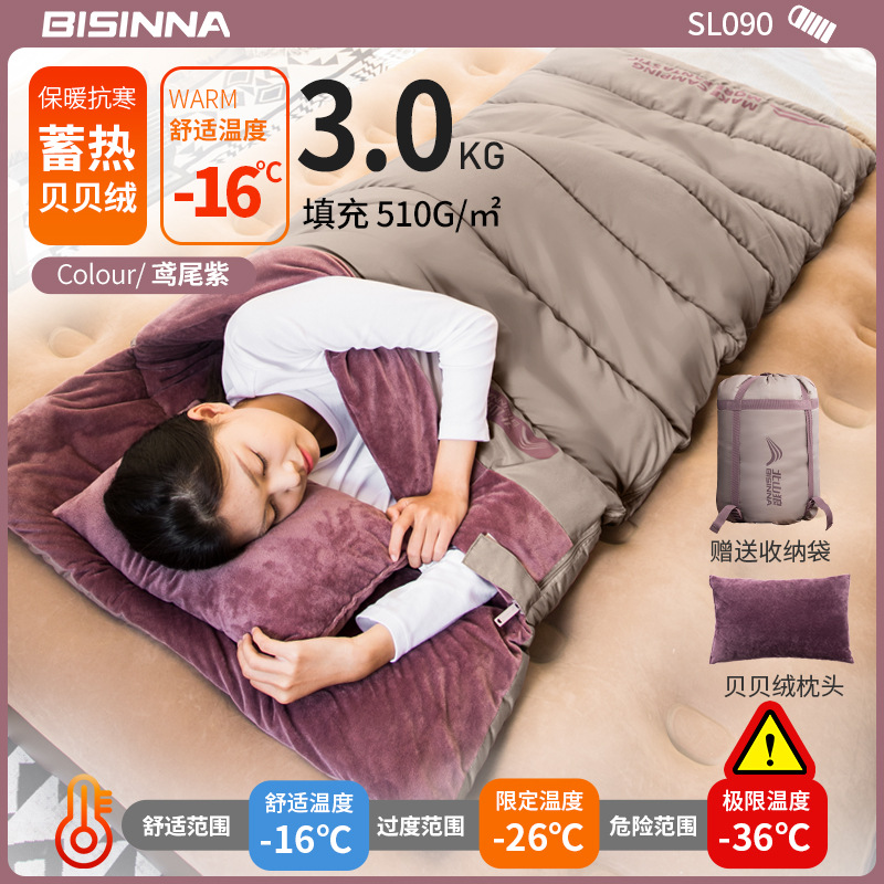성인 야외 캠핑을위한 Beishanlang 침낭 겨울 두꺼운 방한 겨울 사무실 점심 휴식 이불 더블 사계절스토어 가기