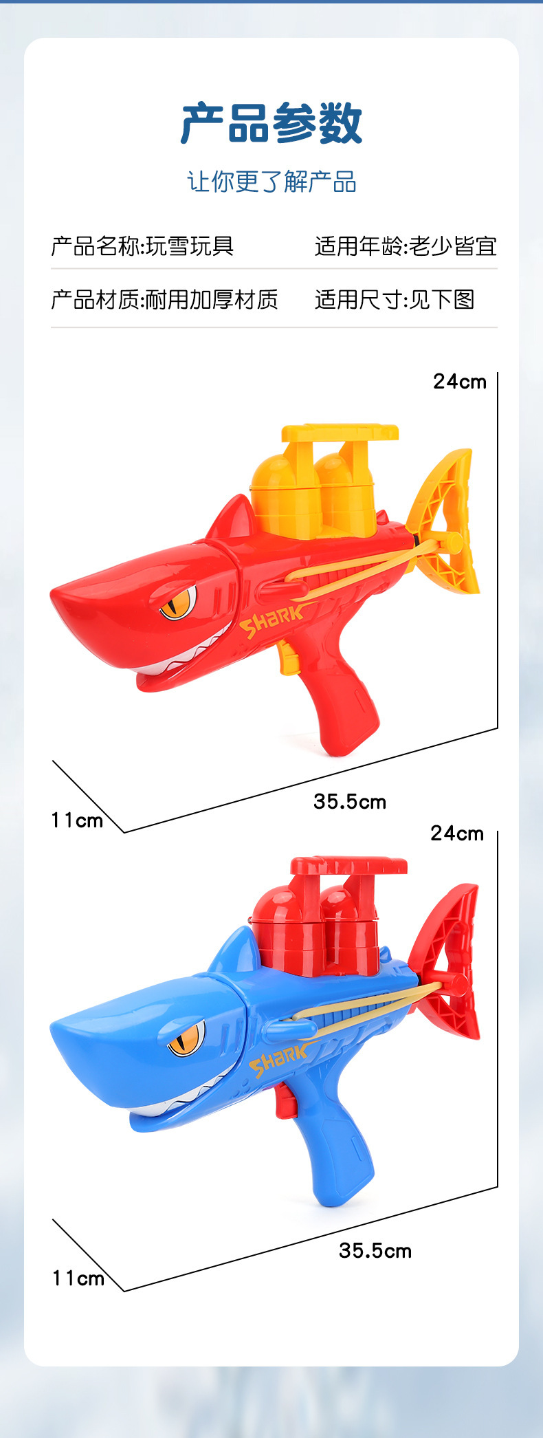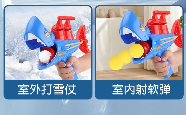 국경 간 Douyin 스노우 볼 총 어린이 상어 발사 소프트 볼 총 야외 눈 놀이 눈싸움 도구 겨울 장난감