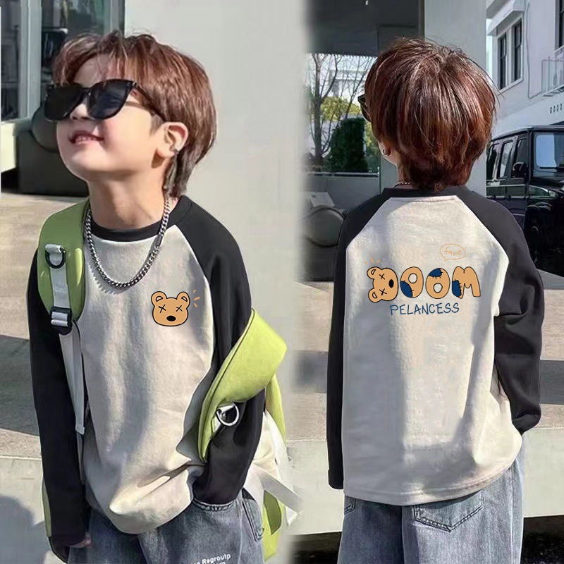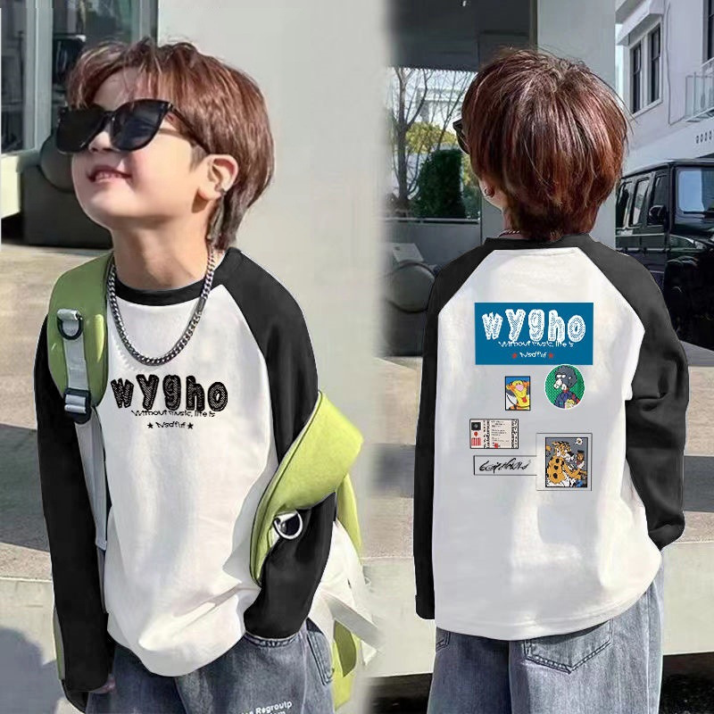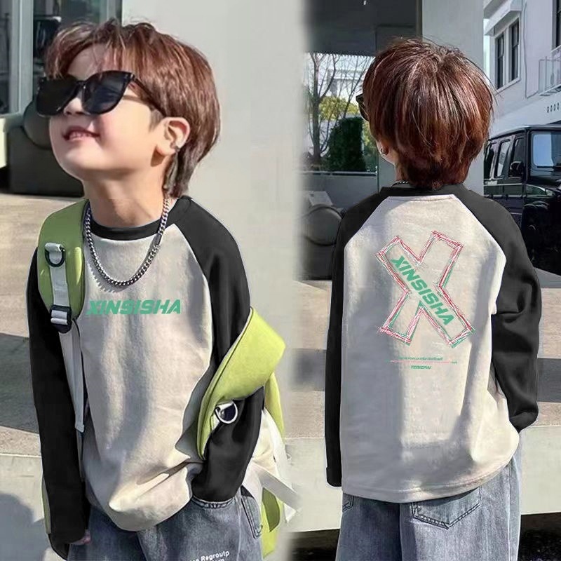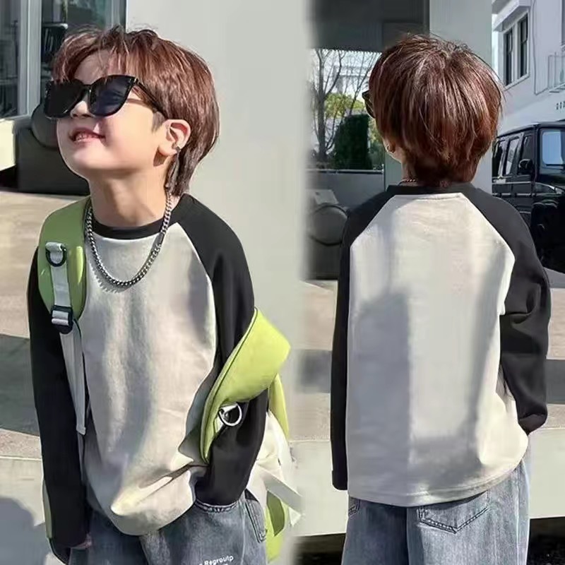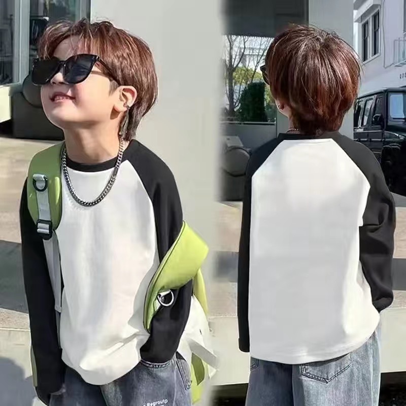 2025 봄과 가을 어린이 면화 라글란 긴팔 티셔츠 대형 어린이 새로운 캐주얼 올 매치 콘트라스트 컬러 베이스 탑스토어 가기