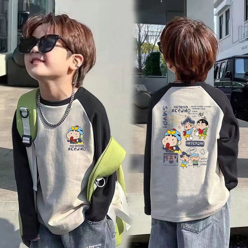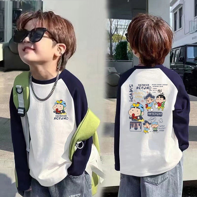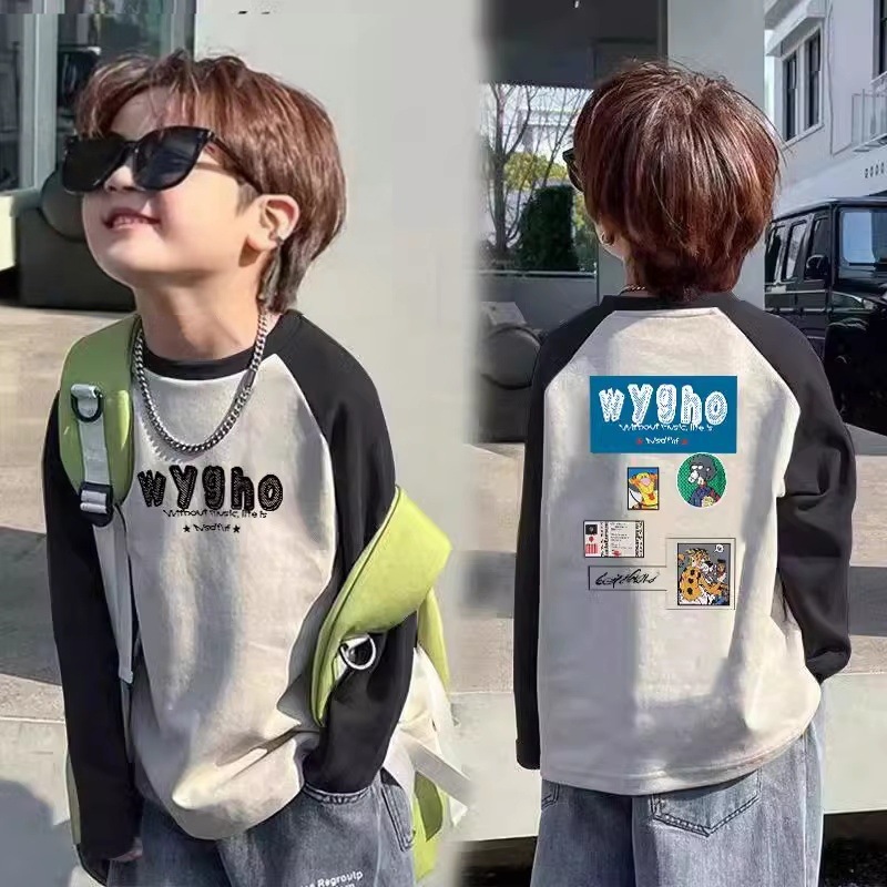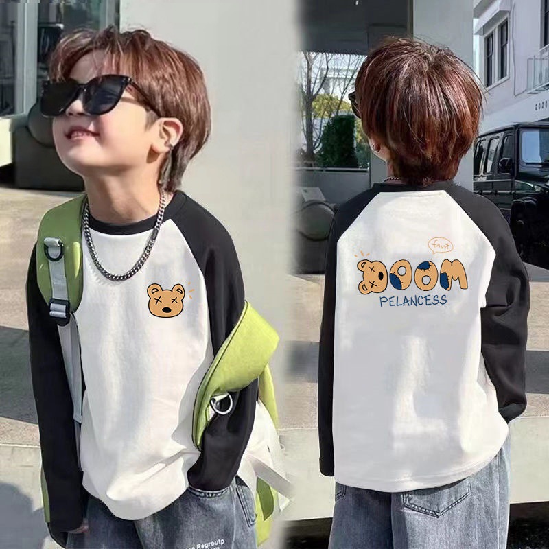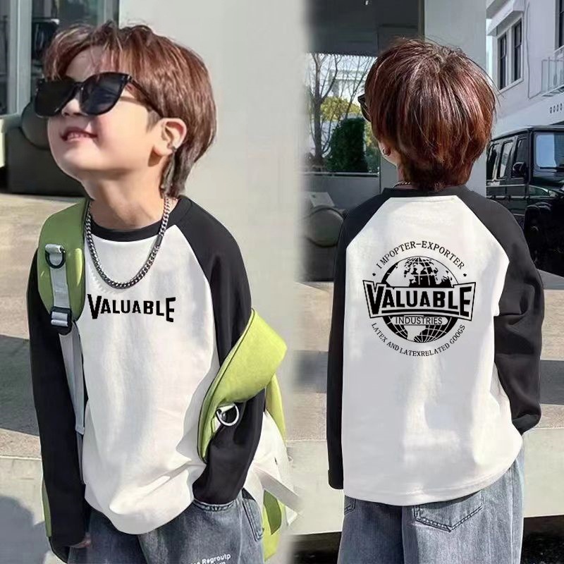 2025 봄과 가을 어린이 면화 라글란 긴팔 티셔츠 대형 어린이 새로운 캐주얼 올 매치 콘트라스트 컬러 베이스 탑스토어 가기