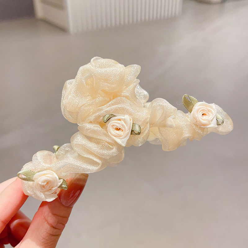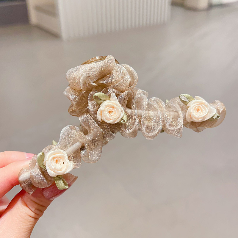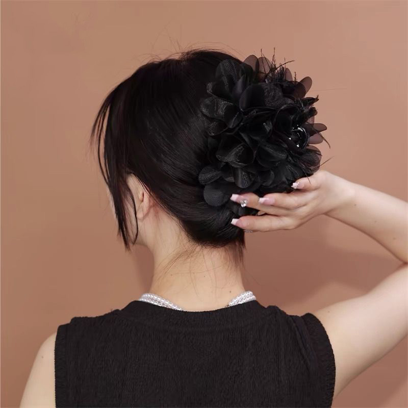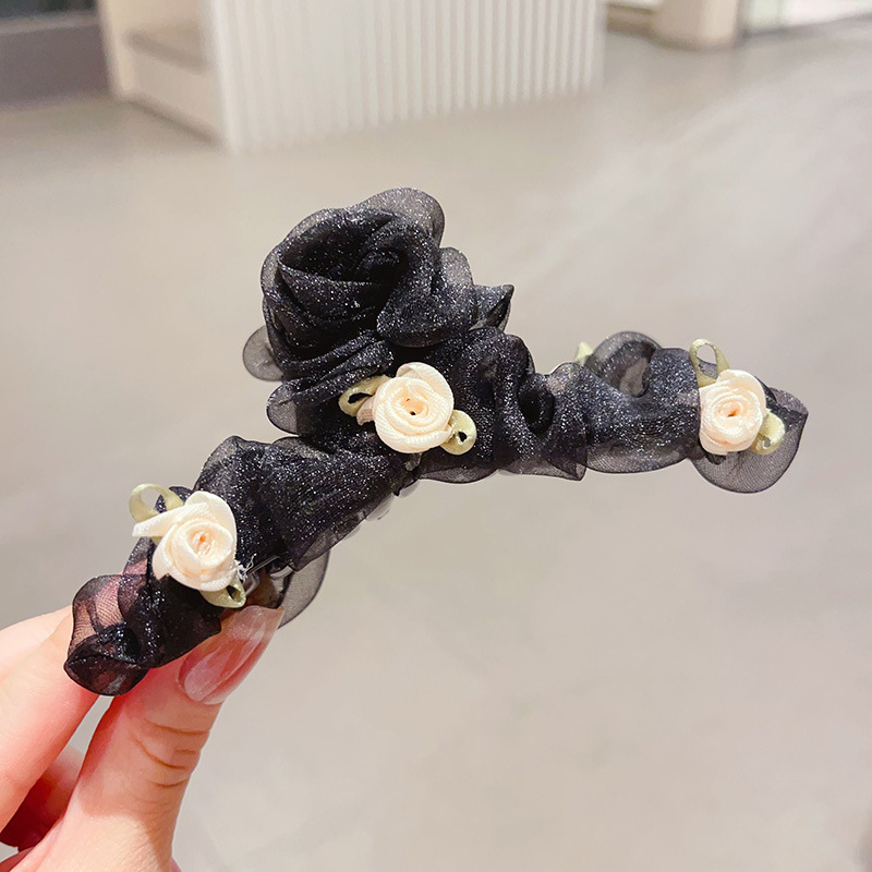 2024新款时尚气质网纱花朵发夹抓夹女高级感鲨鱼夹发卡头饰发夹