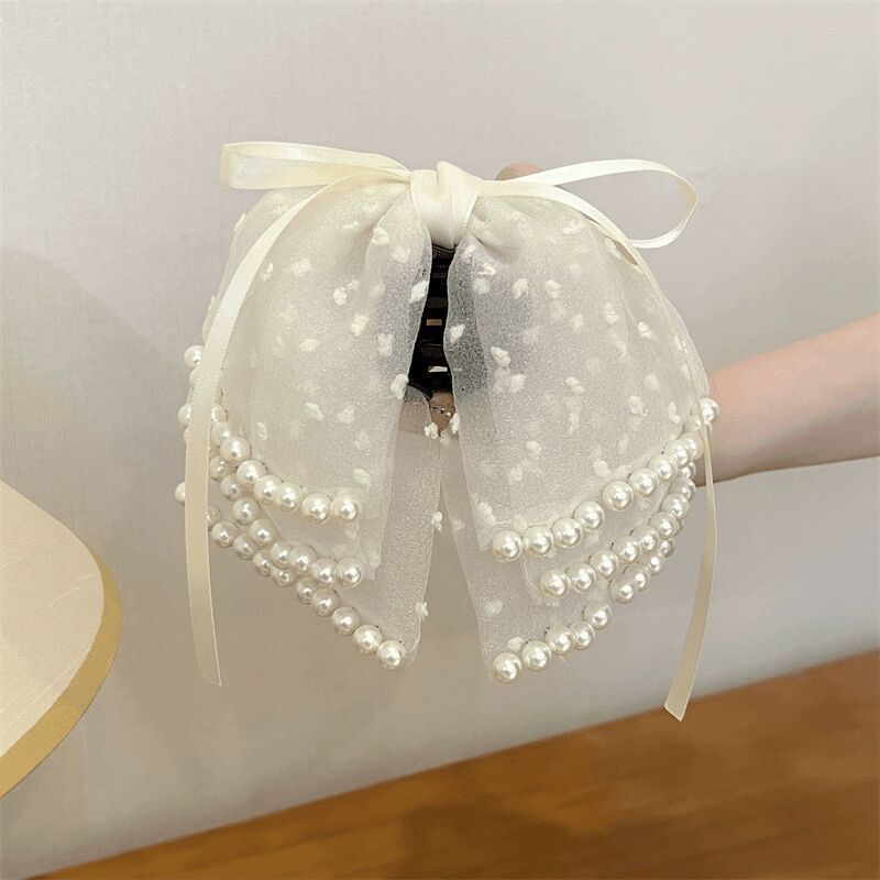 슈퍼 페어리 멀티 레이어 활 반 넥타이 헤어 비즈 잡아 클립 여성의 머리 뒷면 새 스타일 헤어 상어 클립 고급 센스 헤어핀