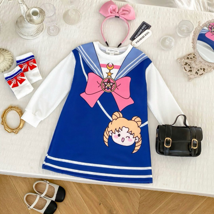 아기 소녀 봄과 가을 새로운 어린이 원피스 패션 서양식 스웨터 스커트 대외 무역 도매 만화 어린이 의류 탑스토어 가기