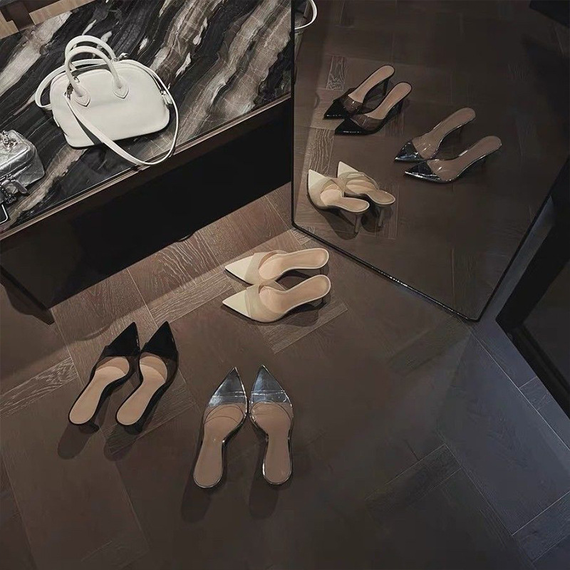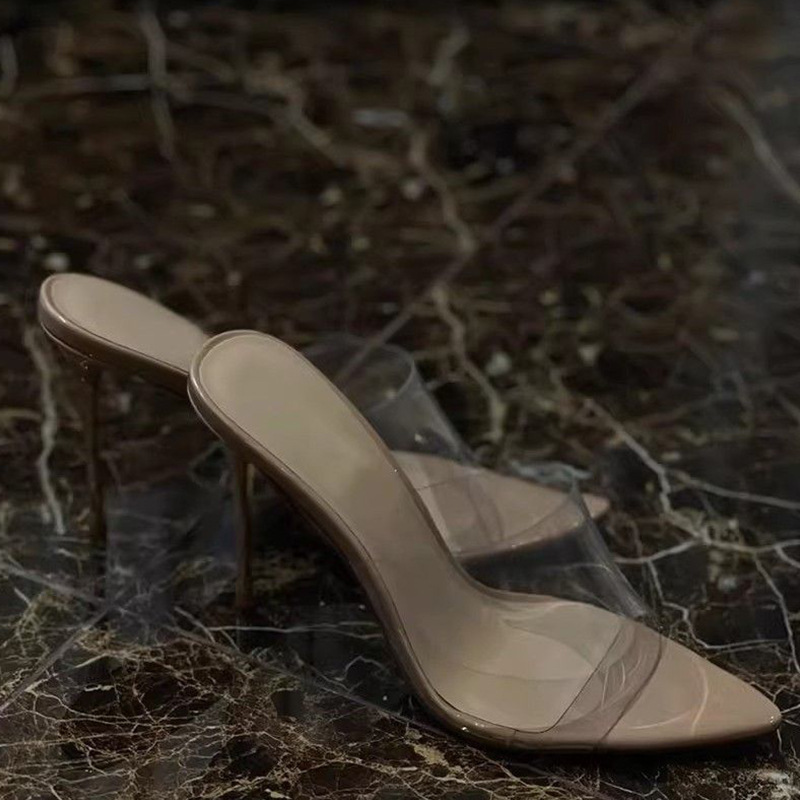 여성을위한 투명한 하이힐 샌들 2025 여름 새로운 패션 스틸레토 힐 섹시한 오픈 발가락 슬리퍼 겉옷