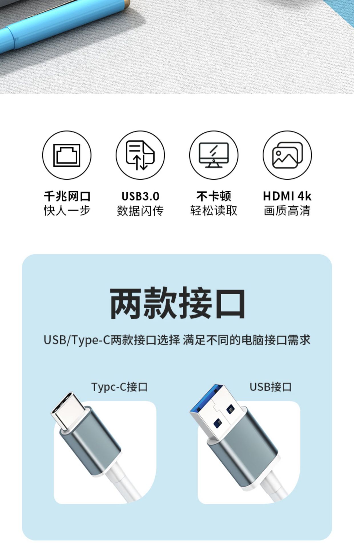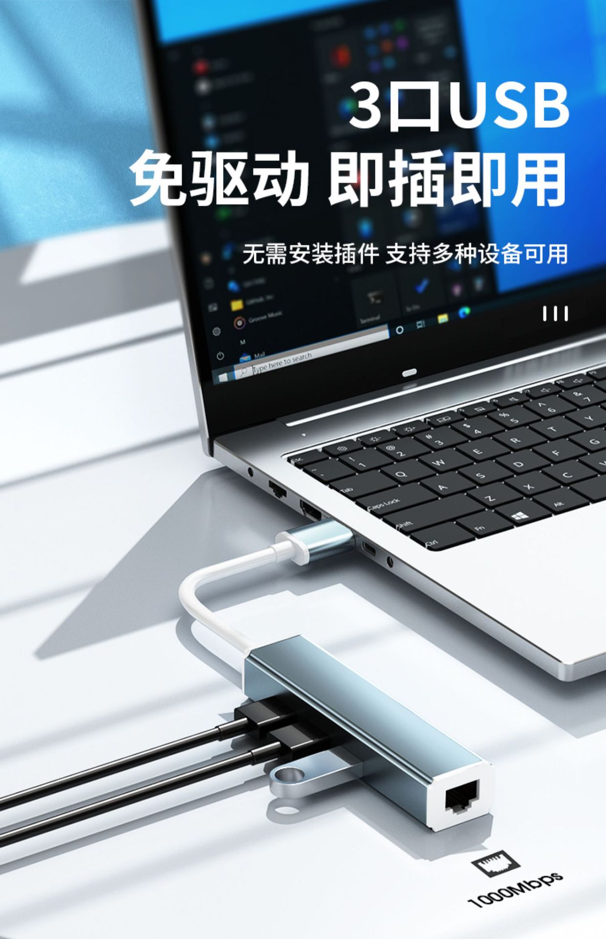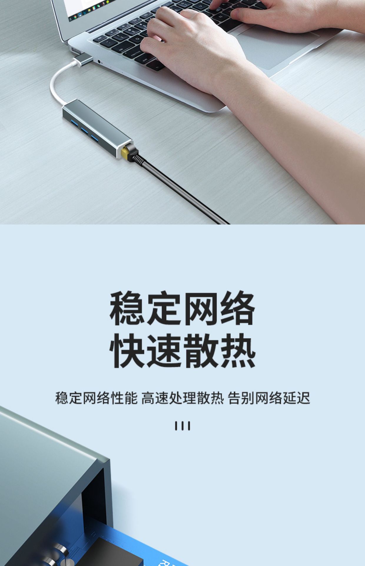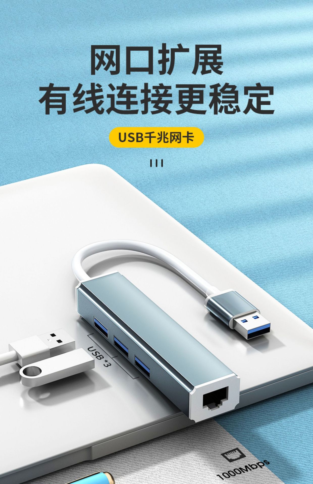 • 0.25mUSB3.0 기가비트 네트워크 카드 [알루미늄 합금-문라이트 실버] 네트워크 포트 + USB_3