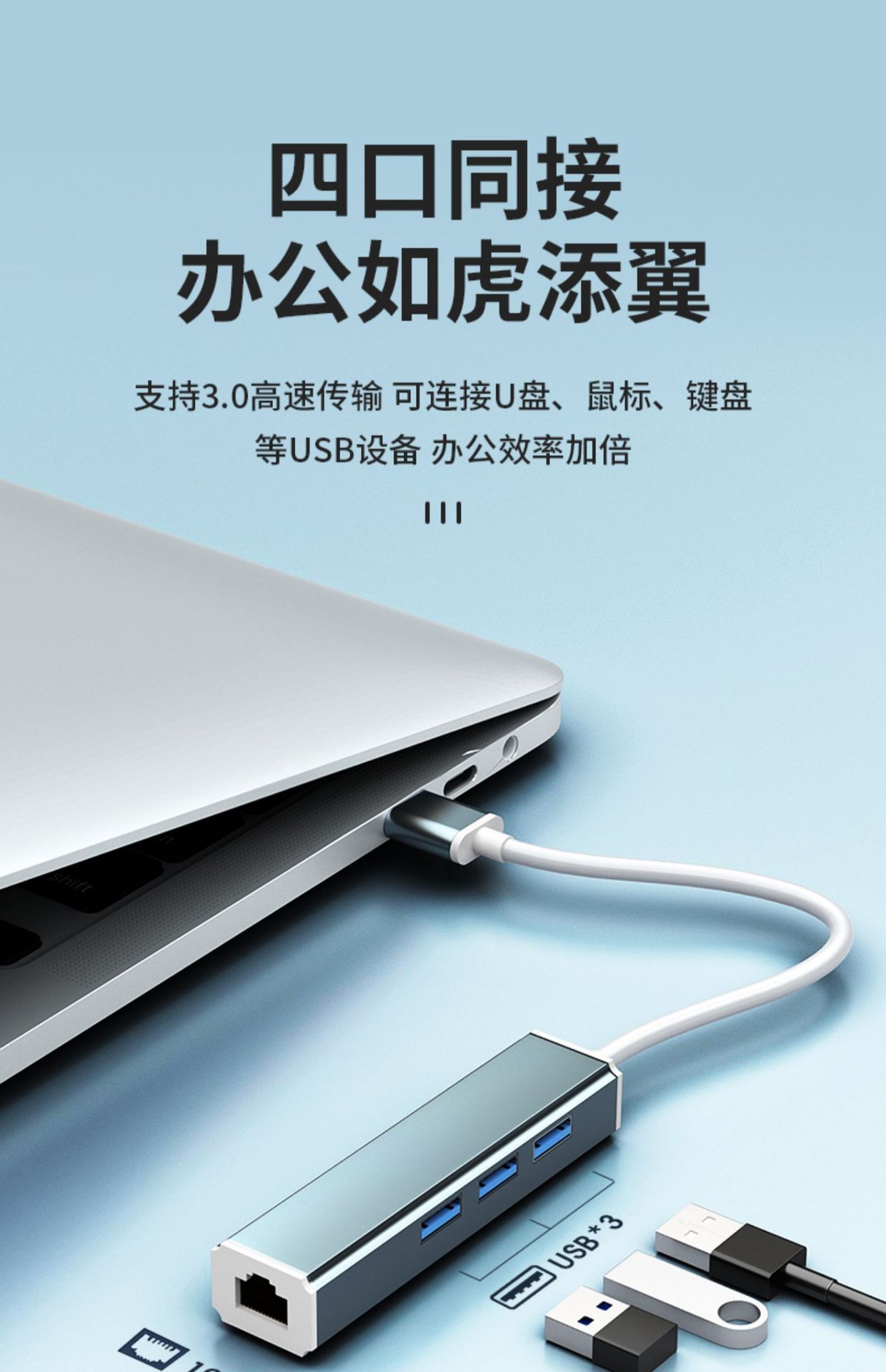 • 0.25mUSB3.0 100M 네트워크 카드 [알루미늄 합금-문라이트 실버] 네트워크 포트 + USB_3