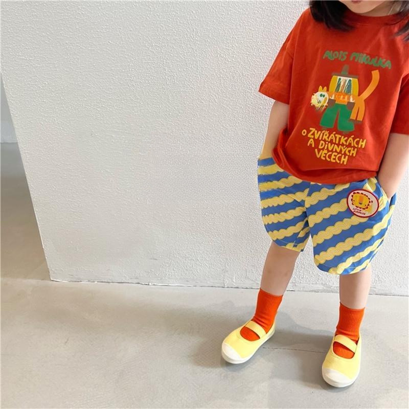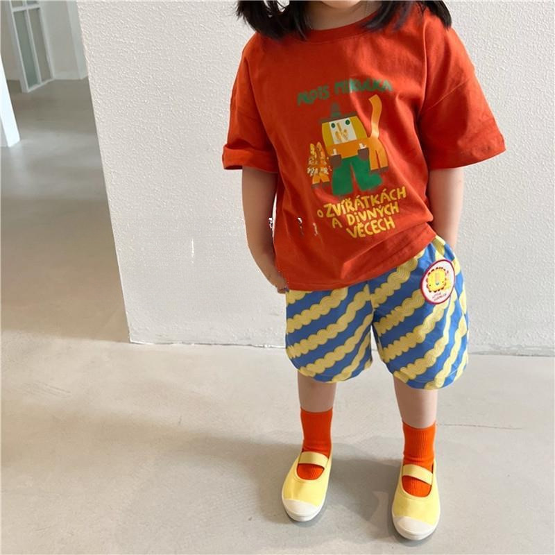 2025 한국식 아동복 아기면 짧은 소매 티셔츠 탑 여름 새로운 만화 잘 생긴 줄무늬 반바지스토어 가기