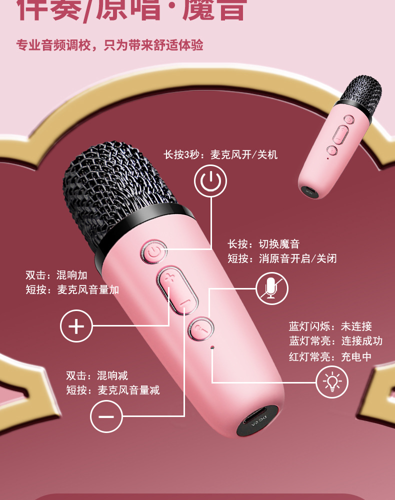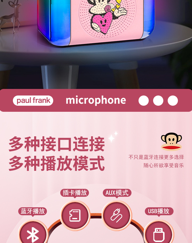 마이크 통합 휴대용 야외 가족 K-노래 오디오 블루투스 마이크 큰 입 원숭이 휴대용 블루투스 오디오