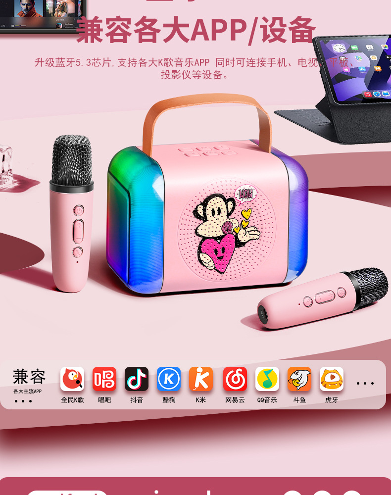 마이크 통합 휴대용 야외 가족 K-노래 오디오 블루투스 마이크 큰 입 원숭이 휴대용 블루투스 오디오스토어 가기