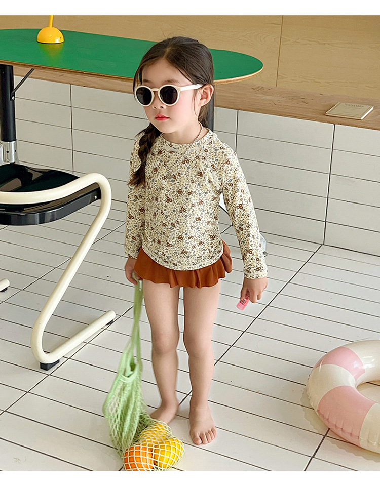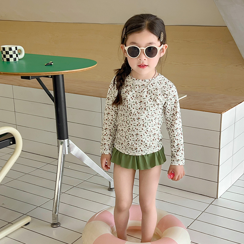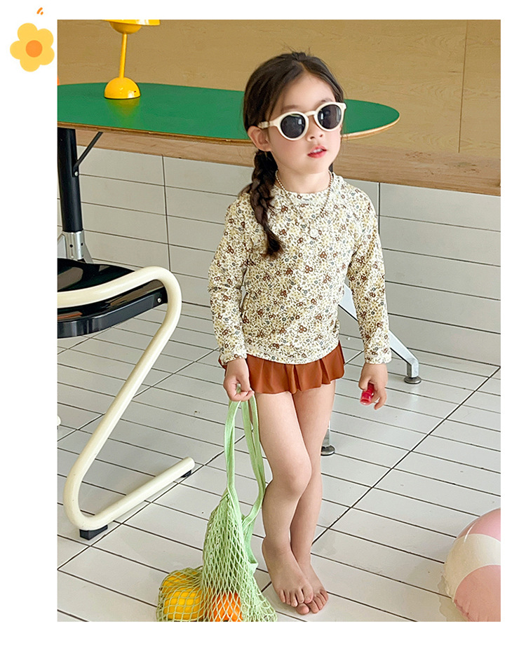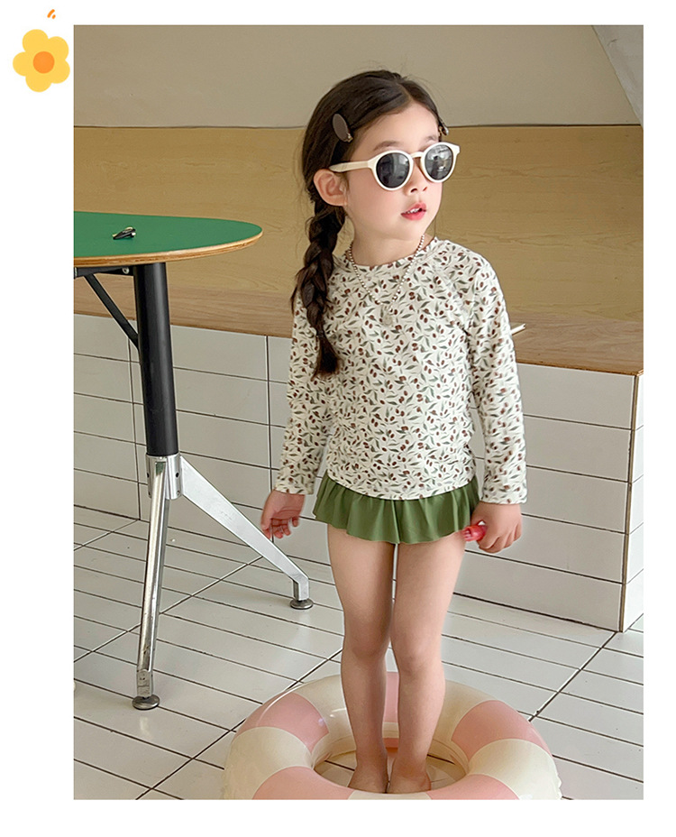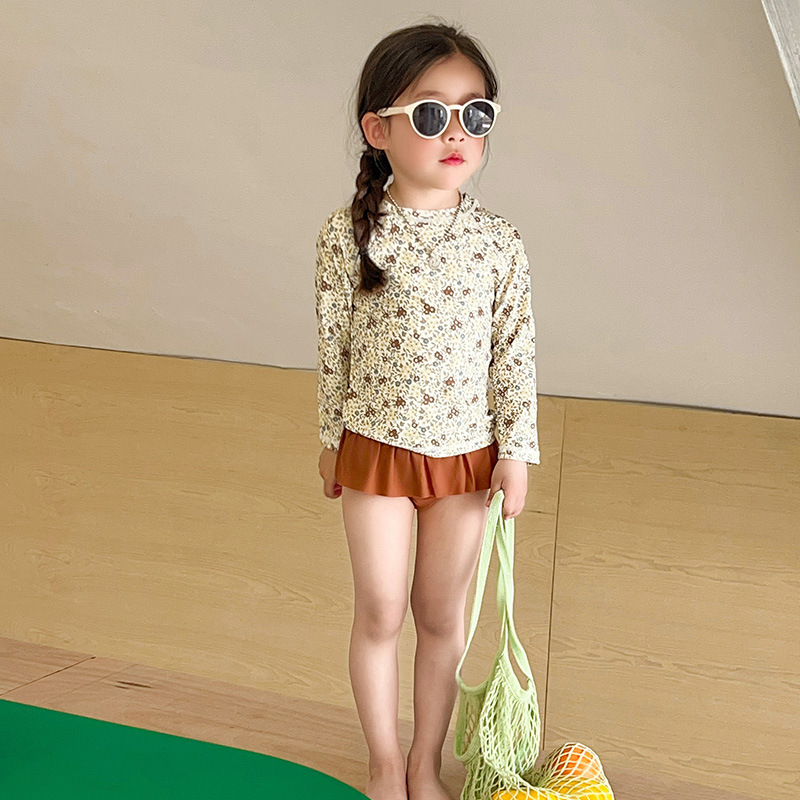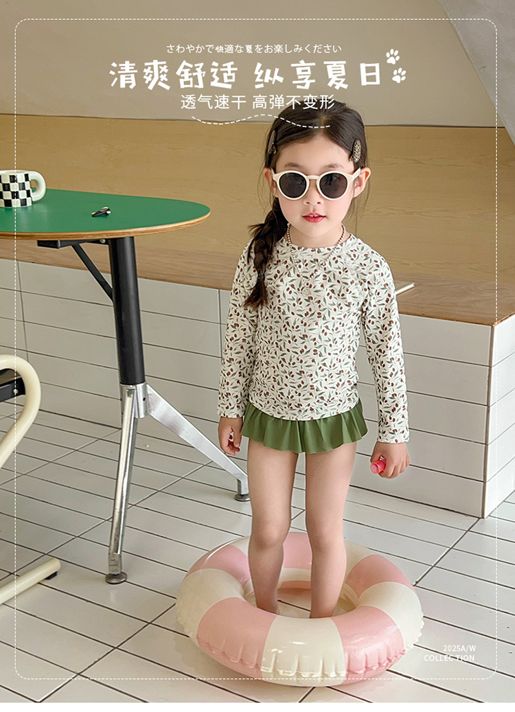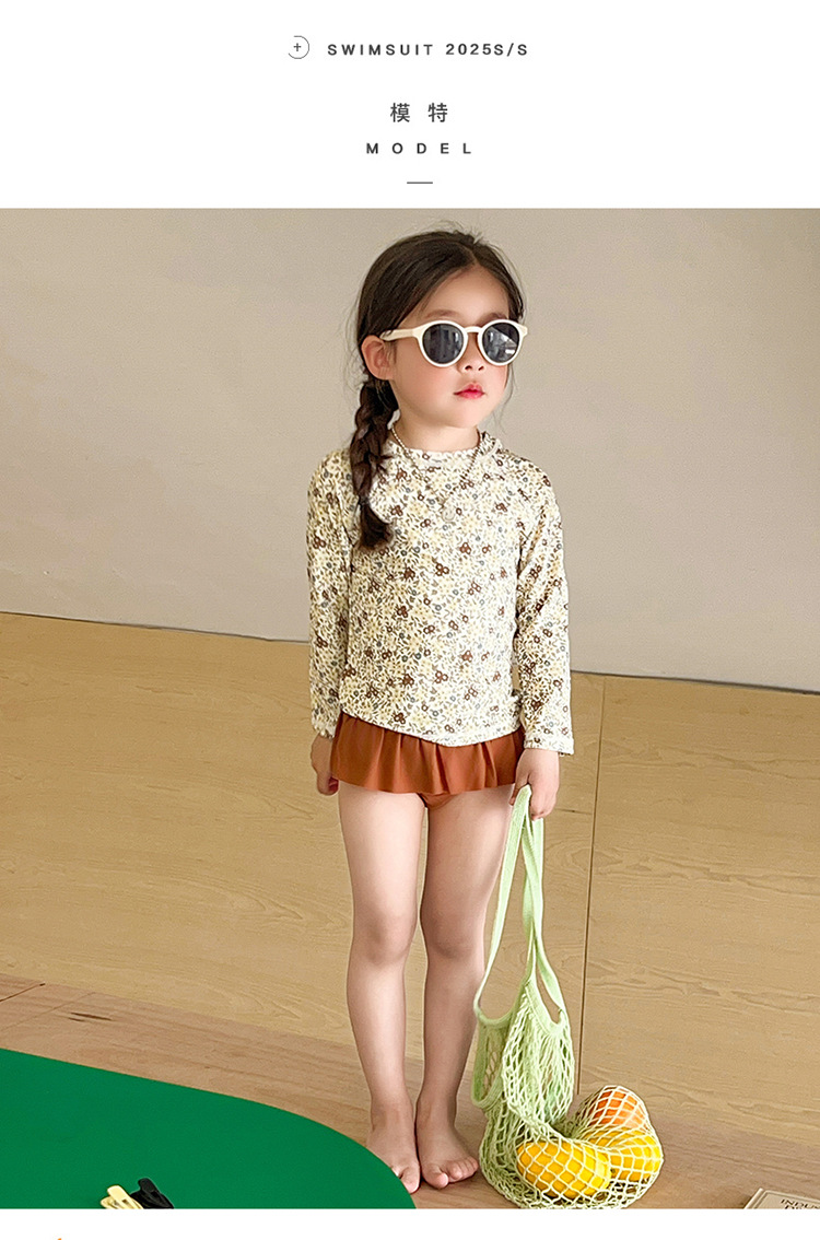 새로운 2025 여자 아기 꽃 2 색 스플릿 수영복 소녀 해변 휴가 스타일 수영복스토어 가기