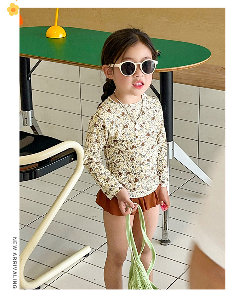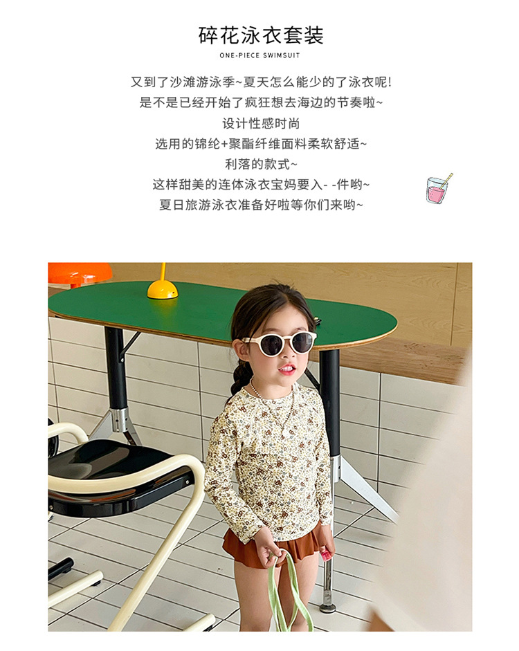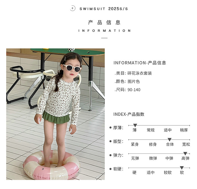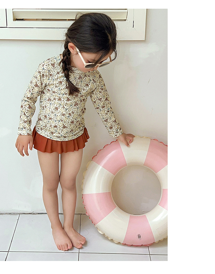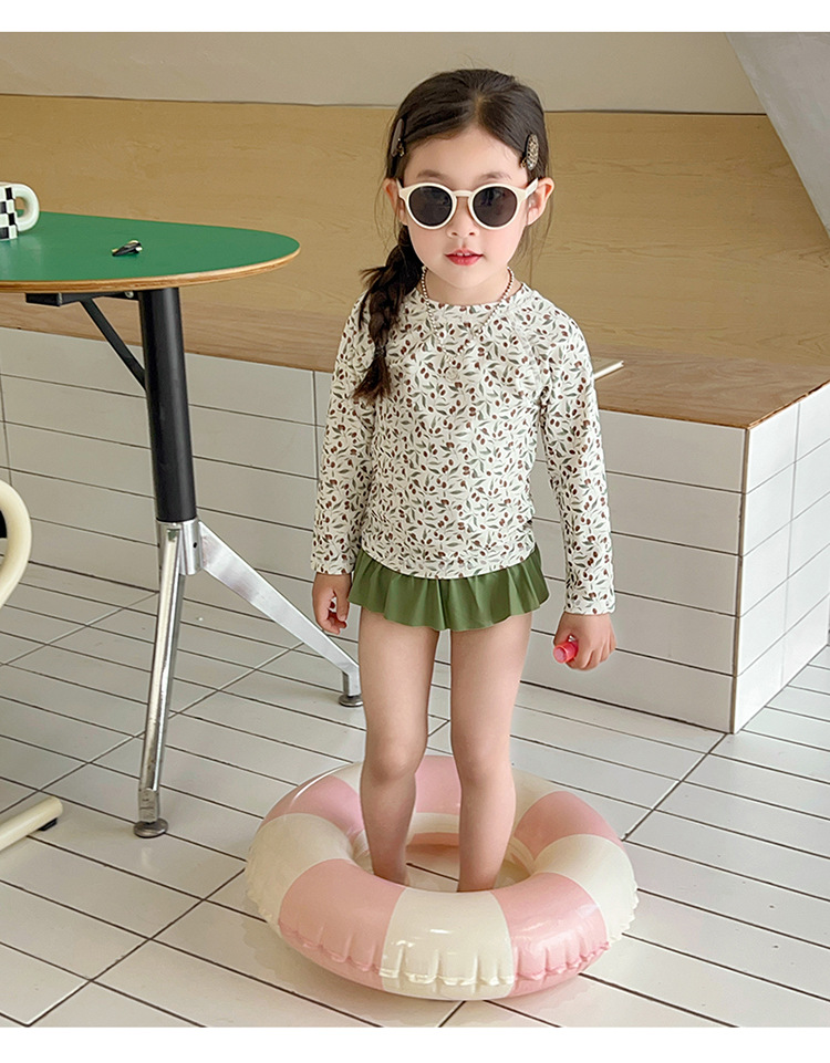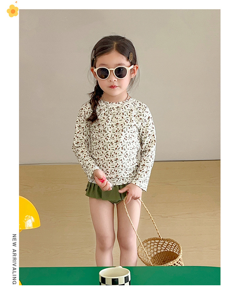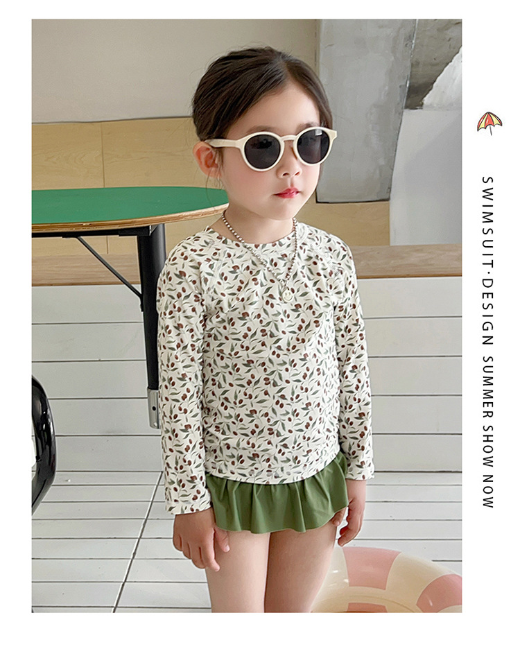 새로운 2025 여자 아기 꽃 2 색 스플릿 수영복 소녀 해변 휴가 스타일 수영복스토어 가기