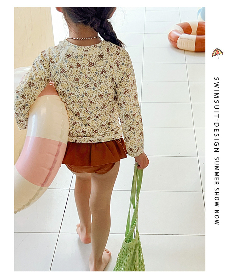 새로운 2025 여자 아기 꽃 2 색 스플릿 수영복 소녀 해변 휴가 스타일 수영복