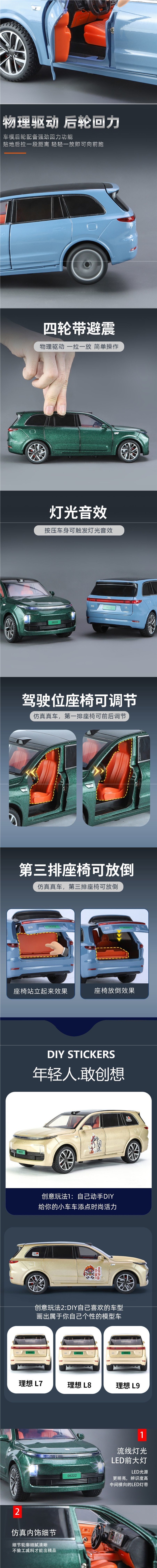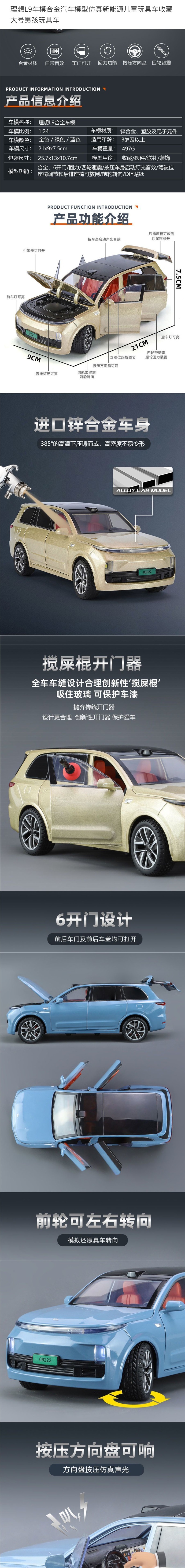 이상적인 L9 자동차 모델 합금 자동차 모델 시뮬레이션 새로운 에너지 어린이 장난감 자동차 컬렉션 큰 소년 장난감 자동차스토어 가기