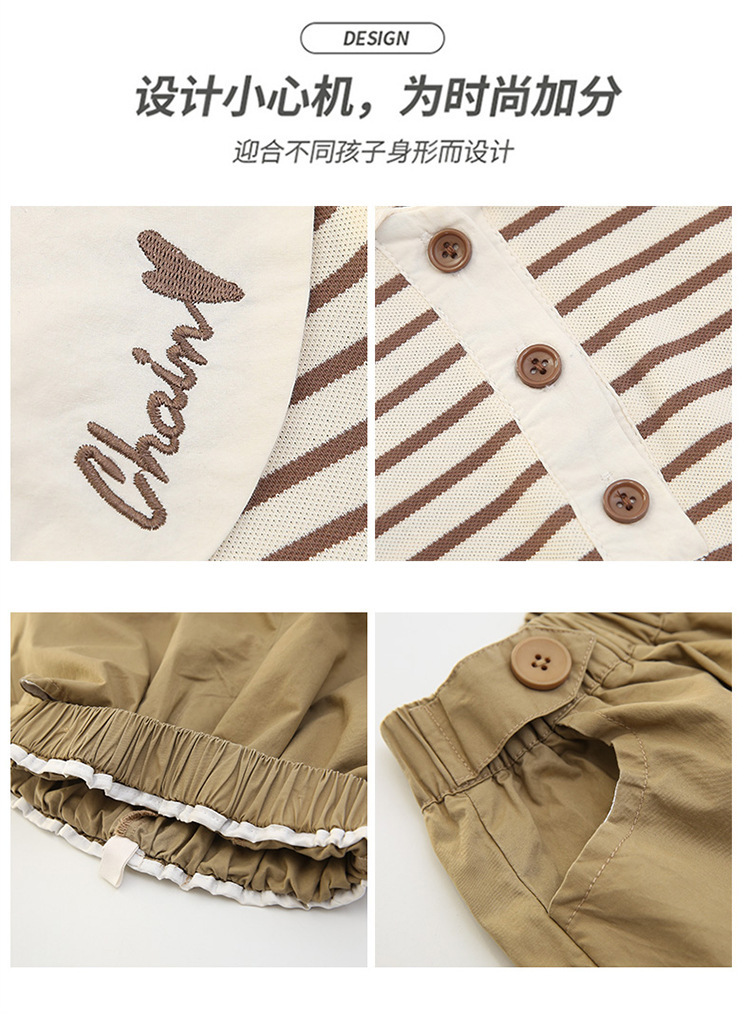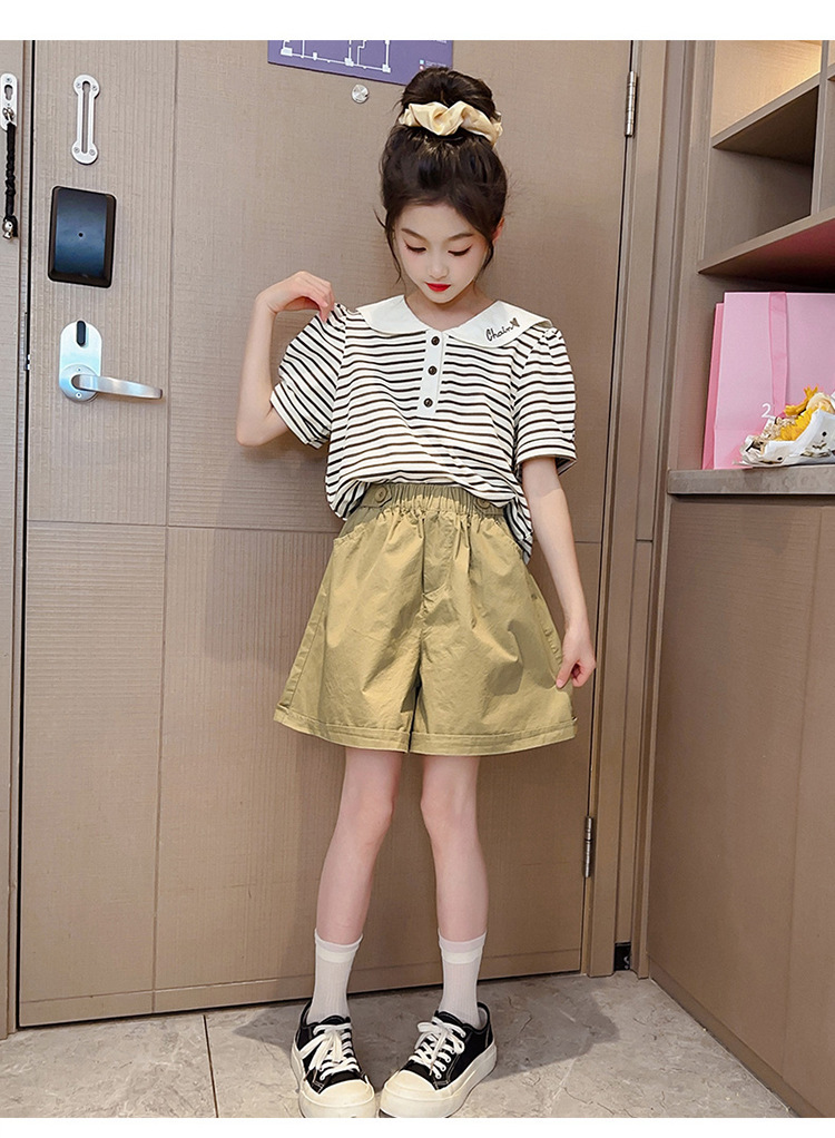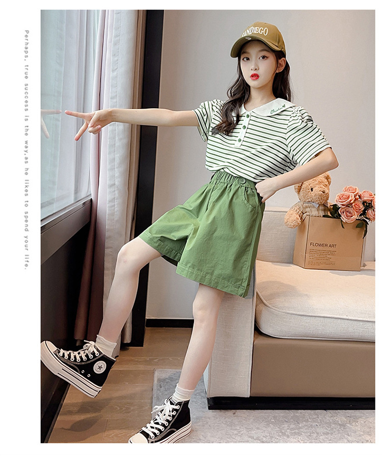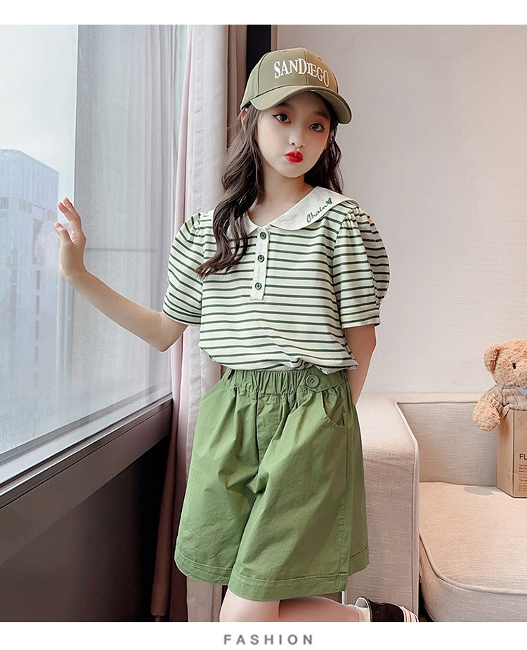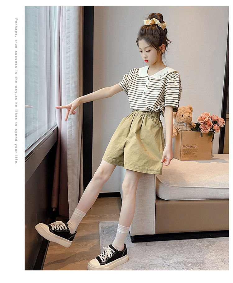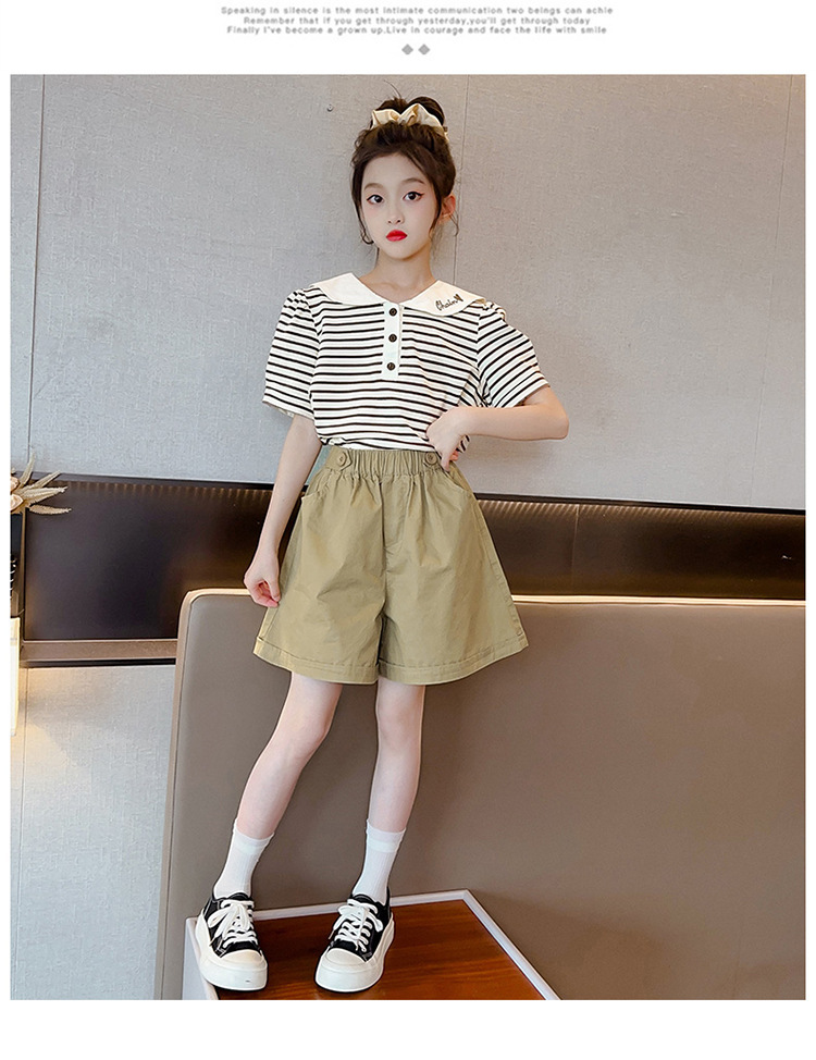 소녀 여름 세트 2024 새로운 한국 스타일 서양식 어린이 짧은 소매 소녀 중 큰 어린이 여름 원피스 줄무늬 투피스 세트