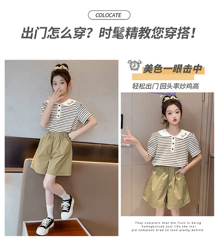소녀 여름 세트 2024 새로운 한국 스타일 서양식 어린이 짧은 소매 소녀 중 큰 어린이 여름 원피스 줄무늬 투피스 세트스토어 가기