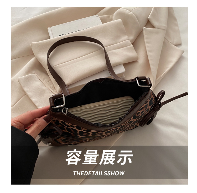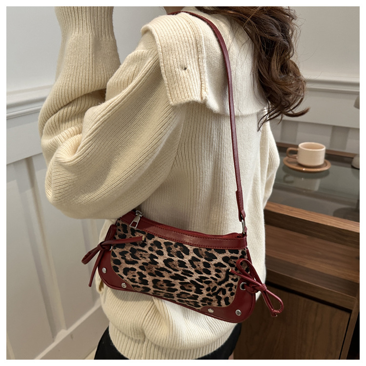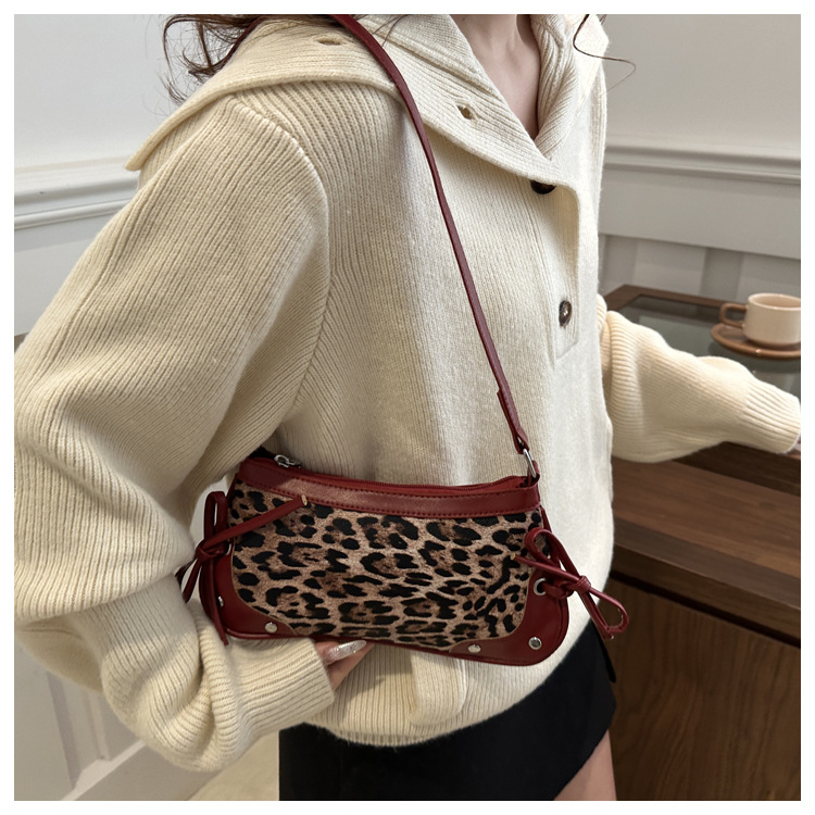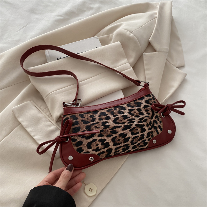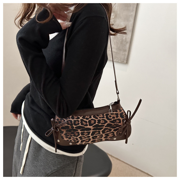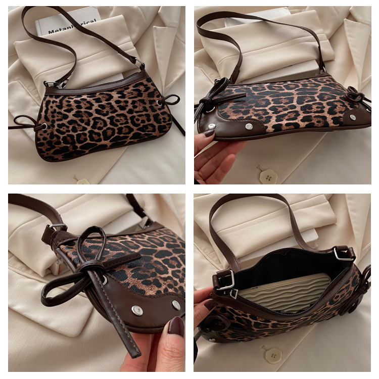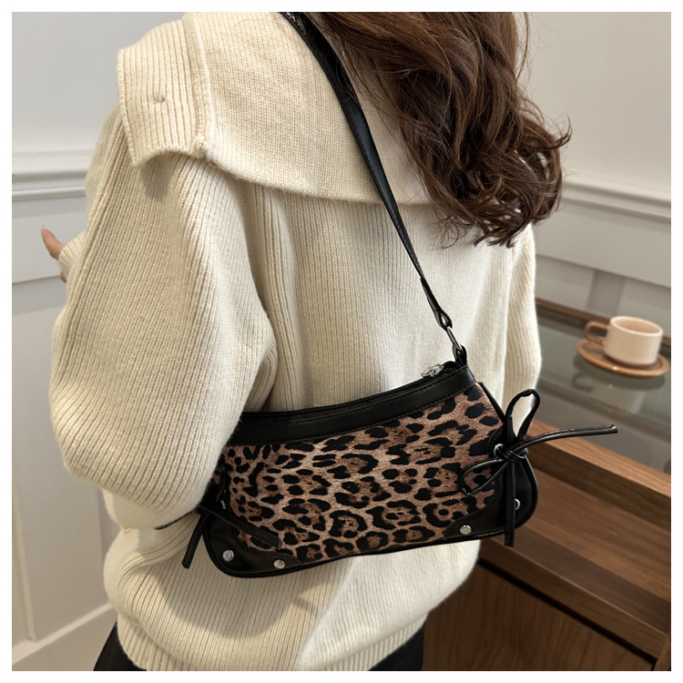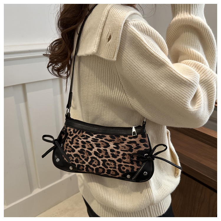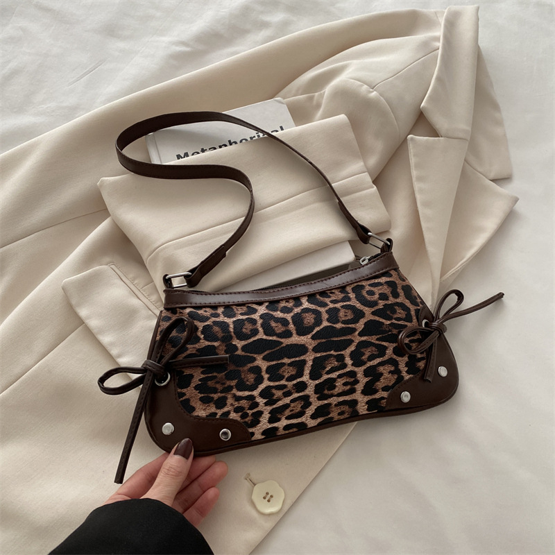 겨드랑이 여성 가방 2025 새로운 유행 패션 레오파드 인쇄 복고풍 어깨 가방 주름 Bowknot 유럽 맞춤형 Crossbody 가방스토어 가기