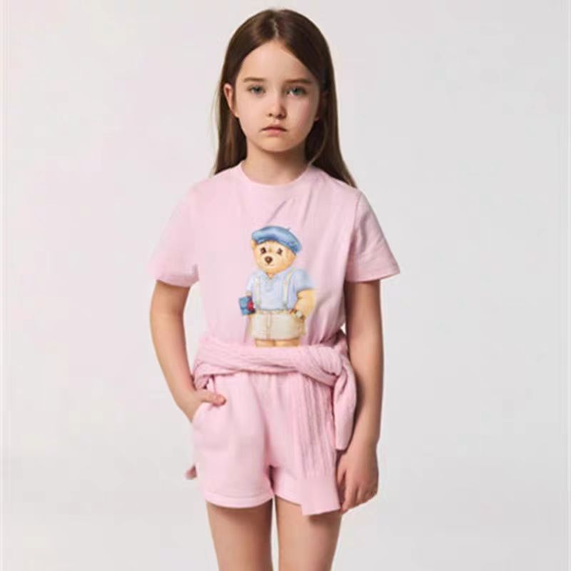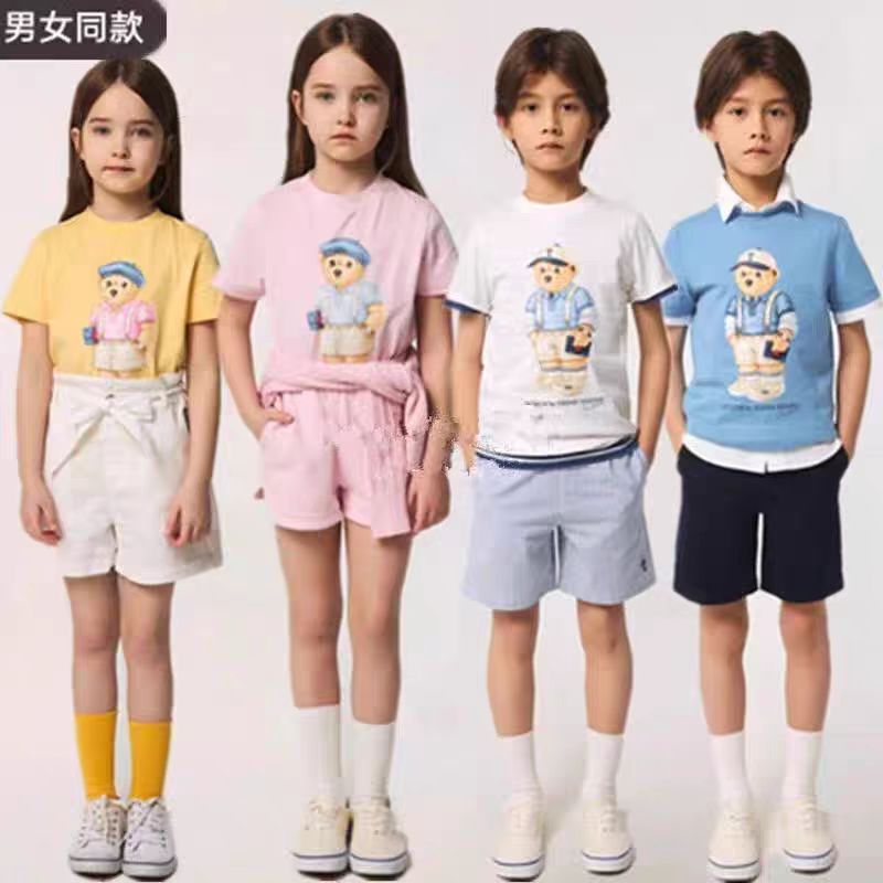 2025 여름 곰 소년과 소녀 라운드 넥 반팔 티셔츠 캐주얼 코튼 탑 중대형 어린이 TKRW256378I