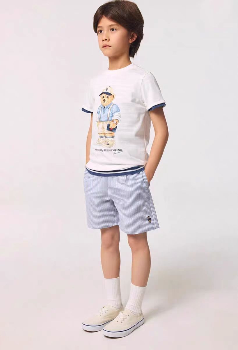 2025 여름 곰 소년과 소녀 라운드 넥 반팔 티셔츠 캐주얼 코튼 탑 중대형 어린이 TKRW256378I스토어 가기