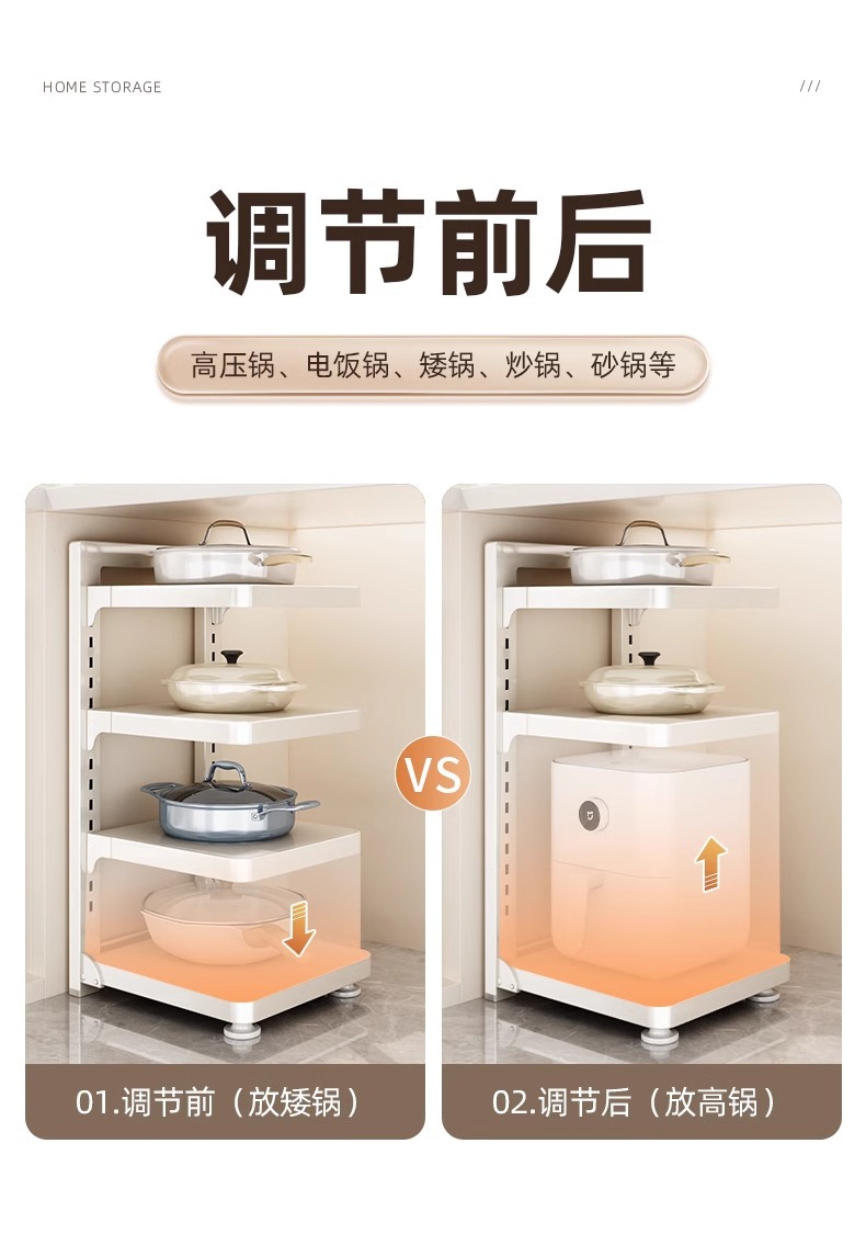 주방 보관 랙 바닥 냄비 보관 랙 주방 캐비닛 가정용 계층화 된 다기능 냄비 랙 싱크 포트 랙