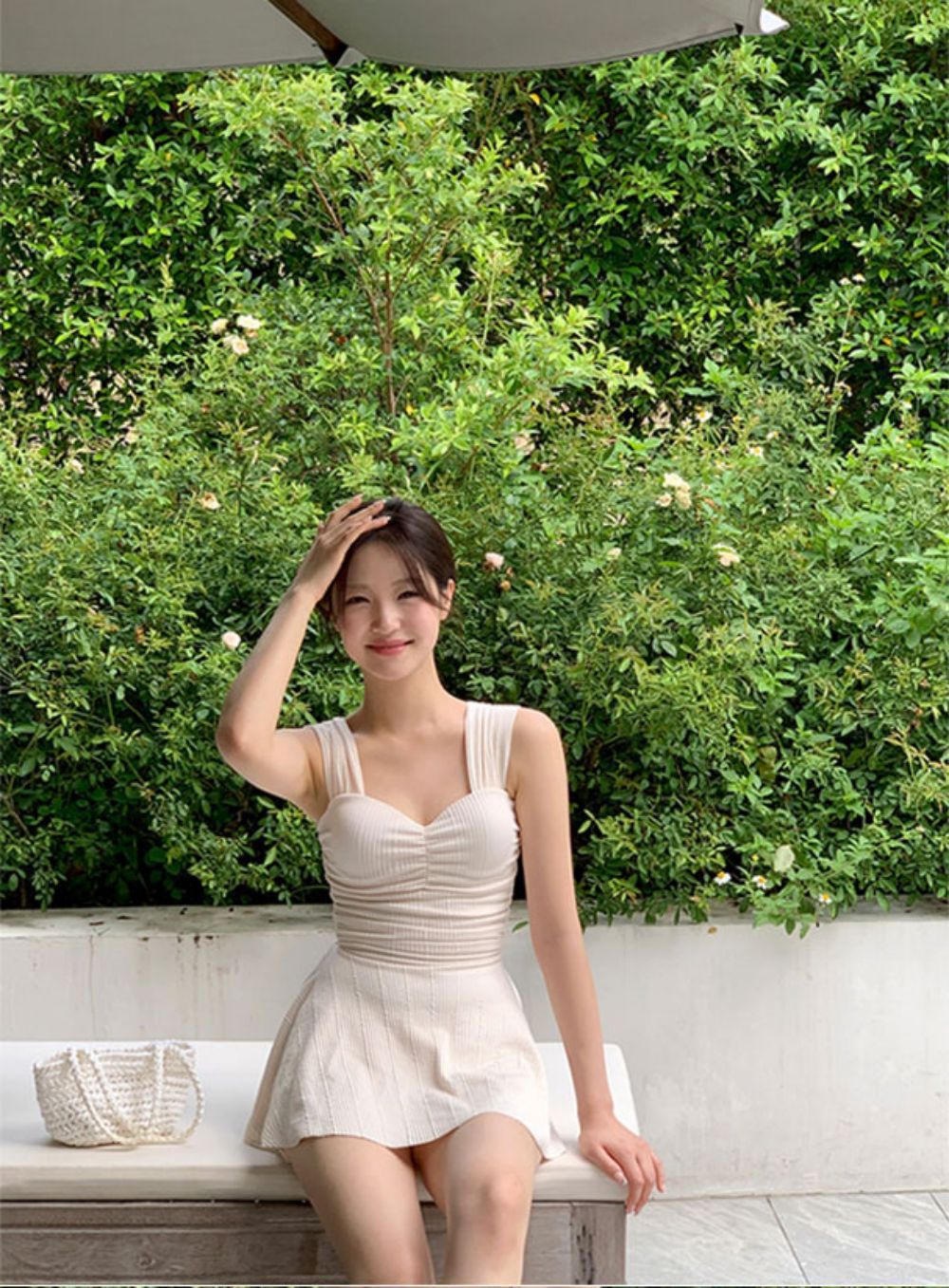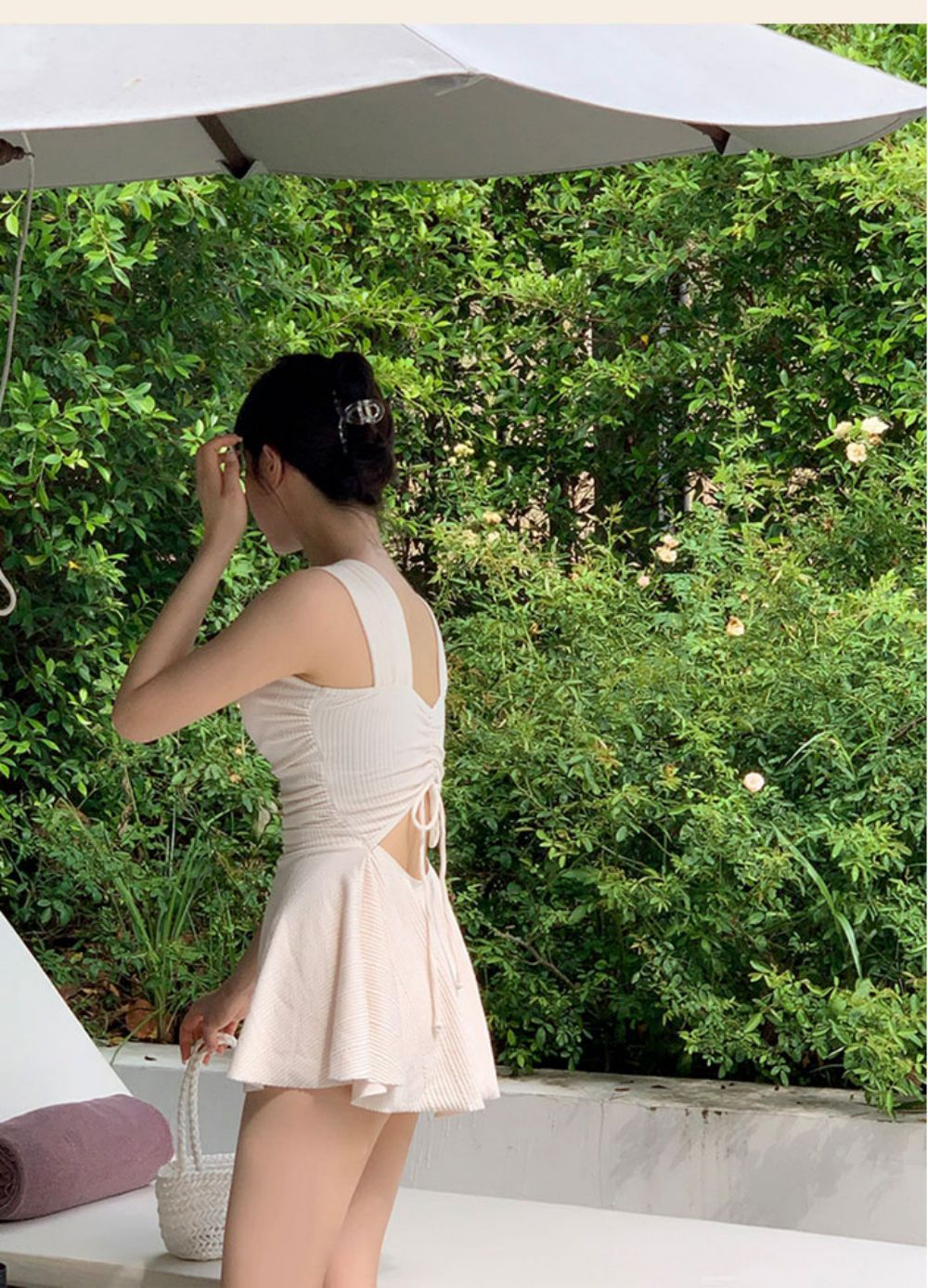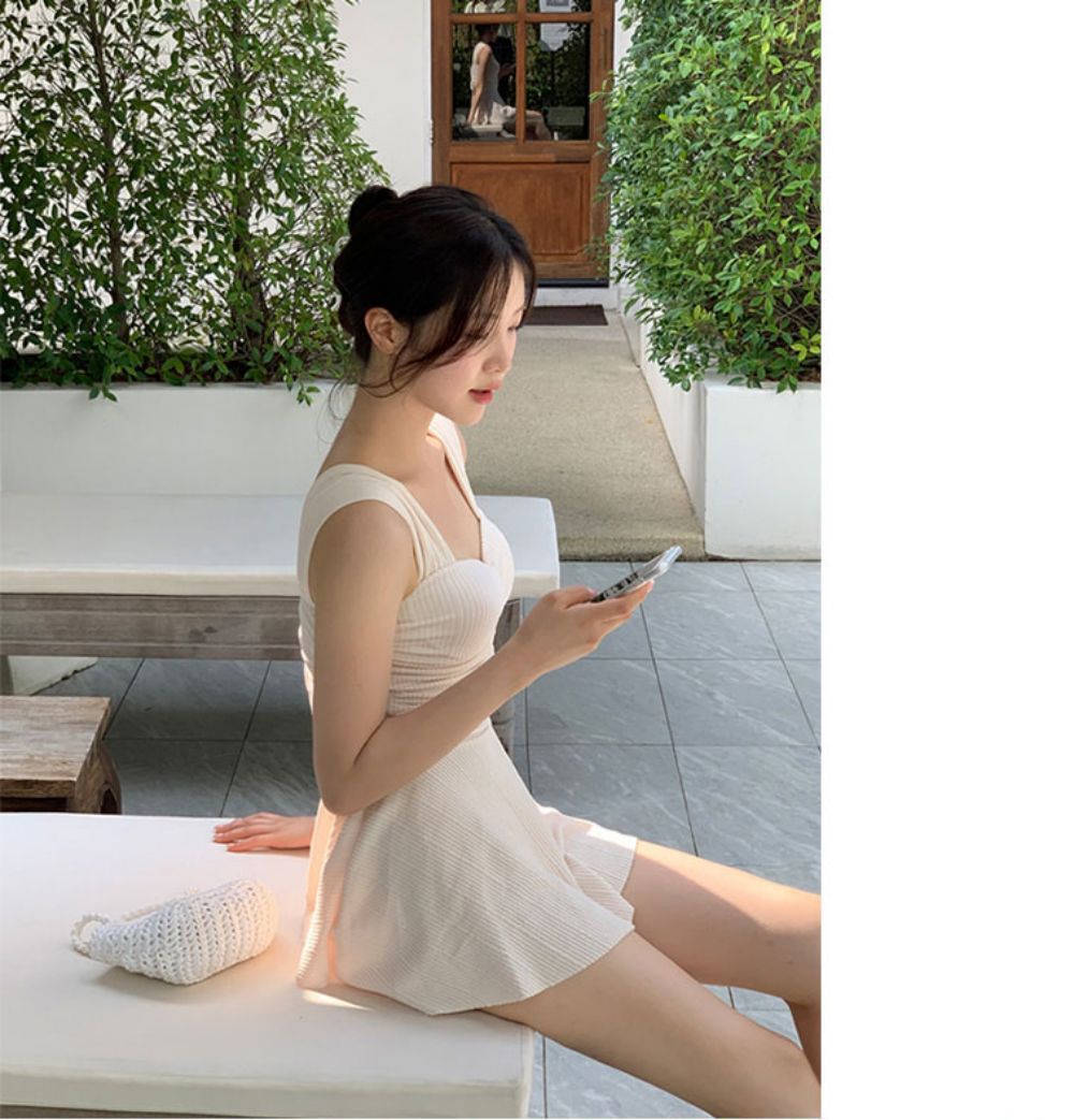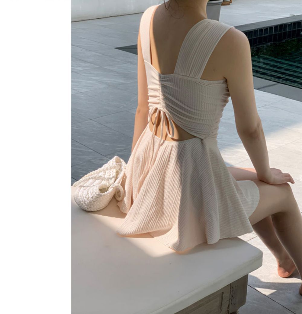 25 새로운 도착 수영복 여성의 섹시한 로우 컷 스커트 솔리드 컬러 수영복 보수적 배꼽 커버 인터넷 인기 슬림핏 수영복스토어 가기