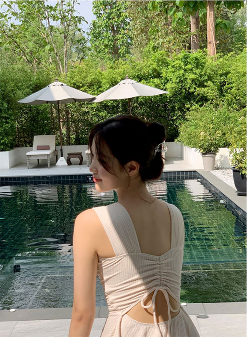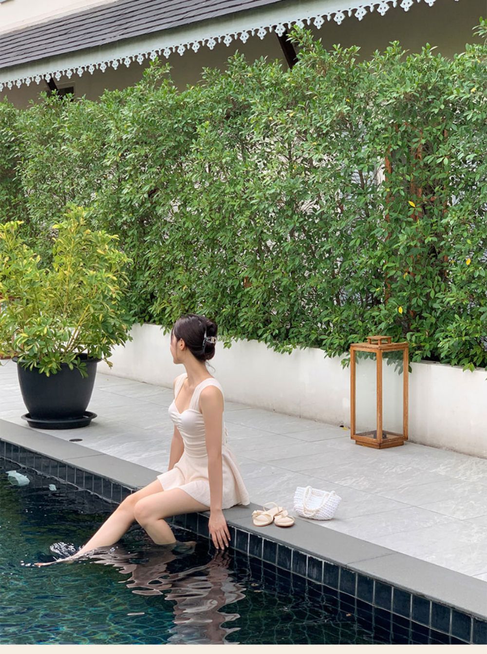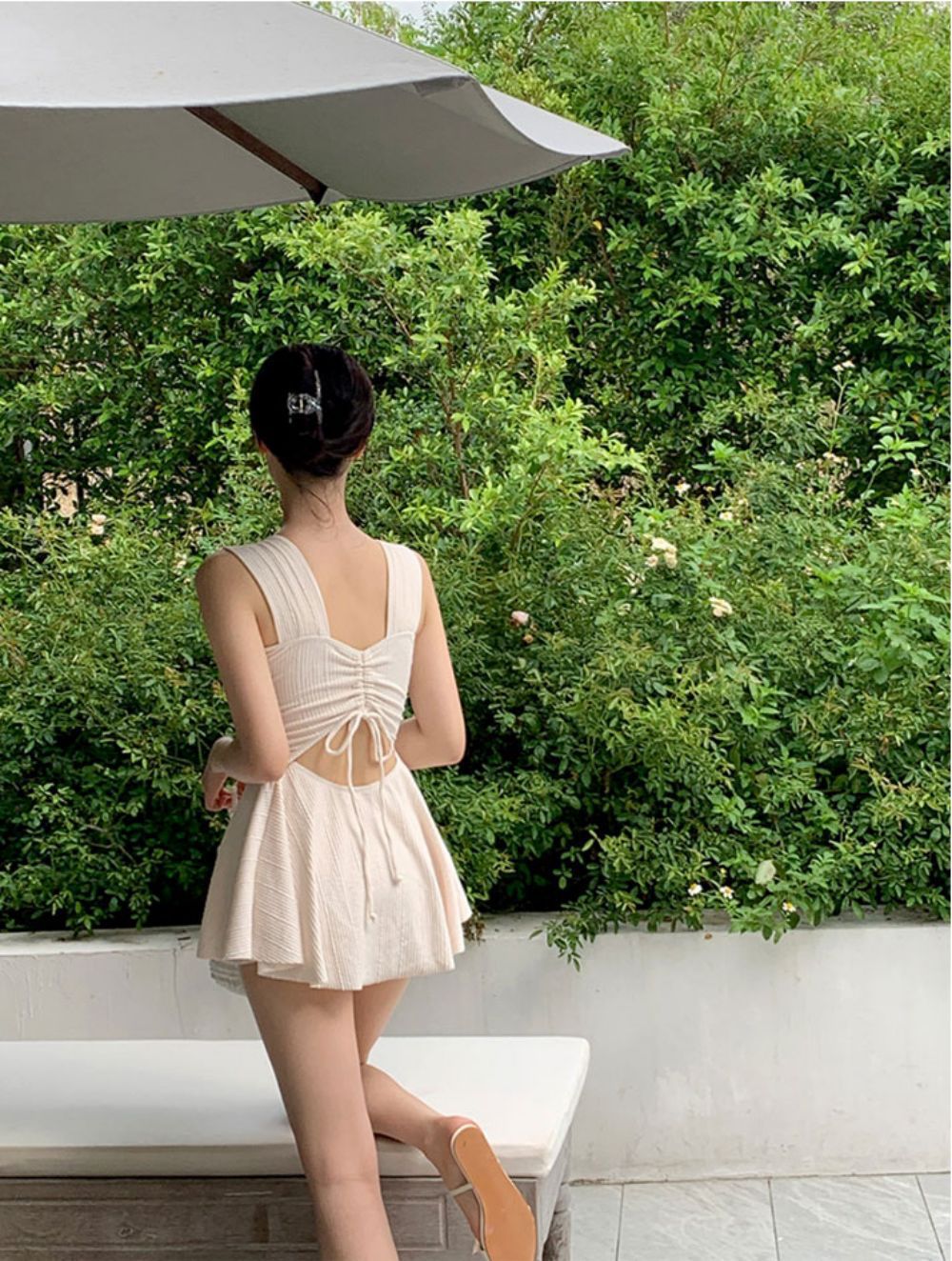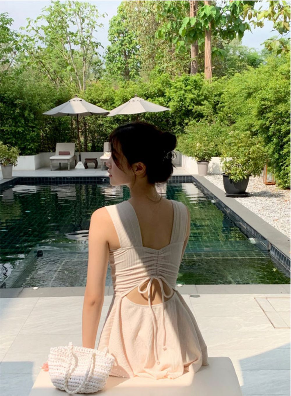 25 새로운 도착 수영복 여성의 섹시한 로우 컷 스커트 솔리드 컬러 수영복 보수적 배꼽 커버 인터넷 인기 슬림핏 수영복스토어 가기
