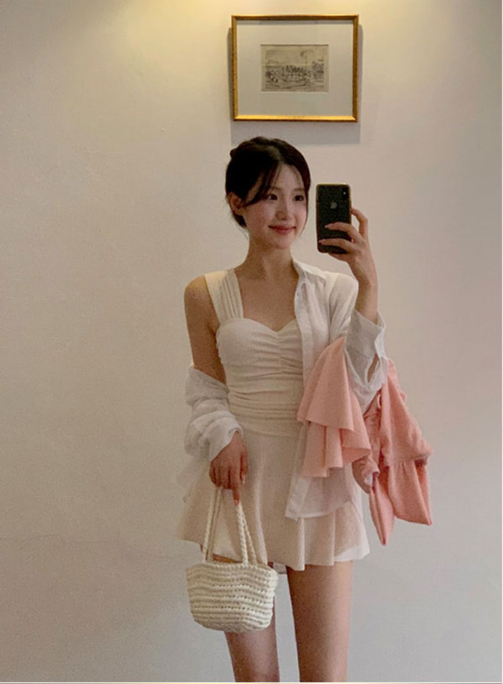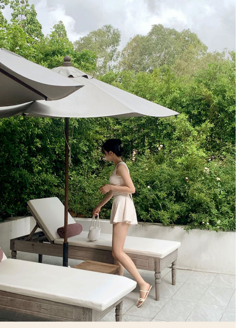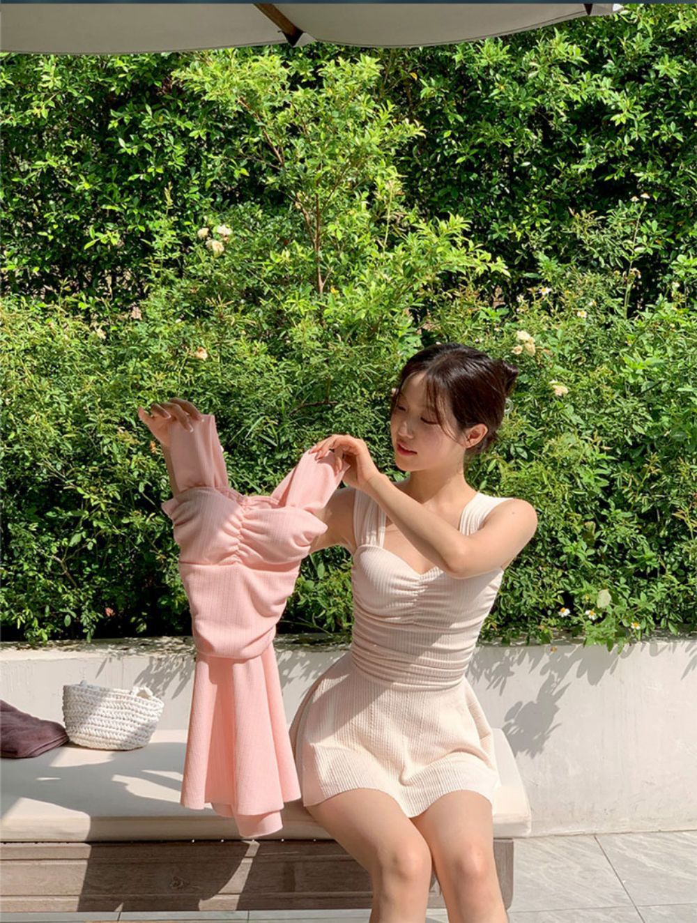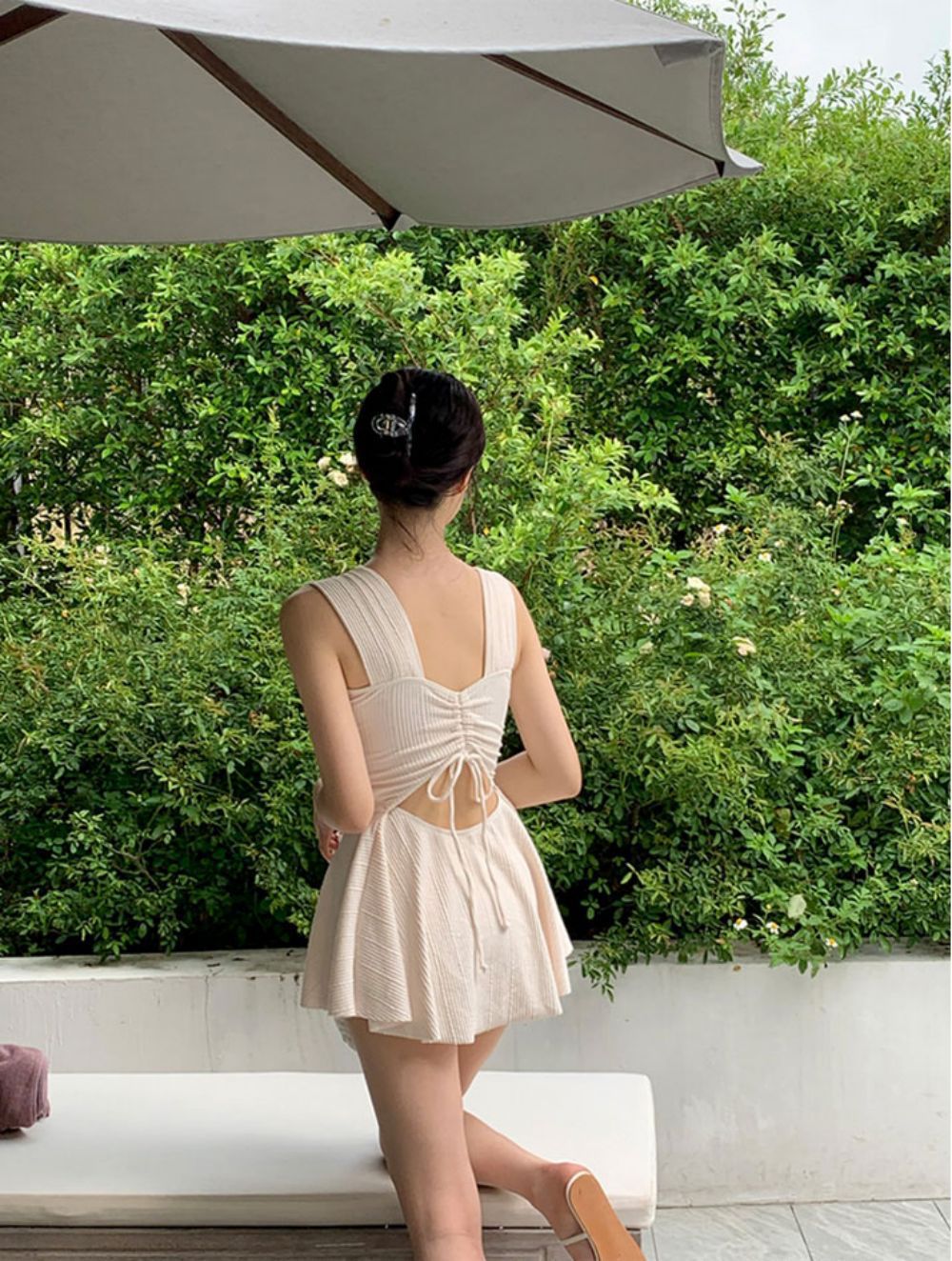 25 새로운 도착 수영복 여성의 섹시한 로우 컷 스커트 솔리드 컬러 수영복 보수적 배꼽 커버 인터넷 인기 슬림핏 수영복스토어 가기