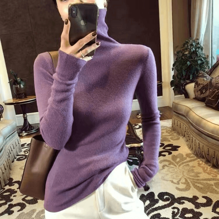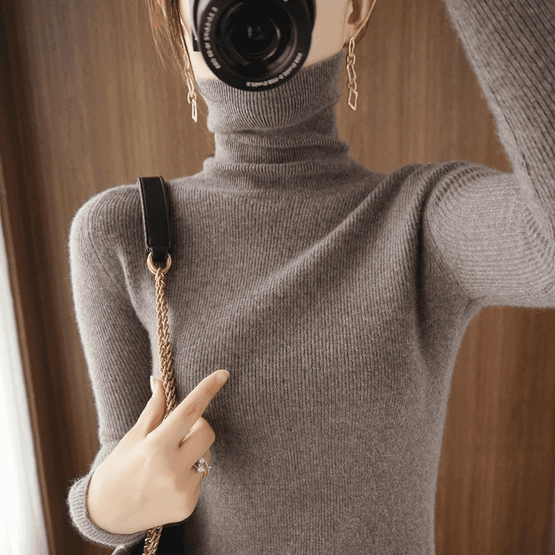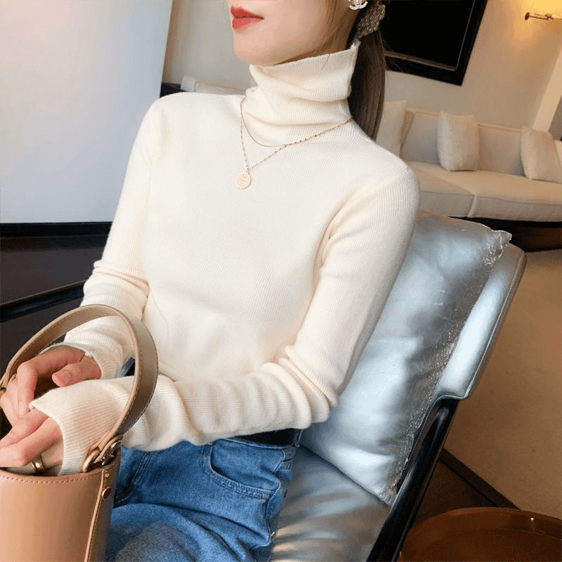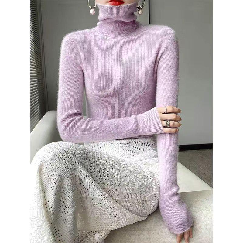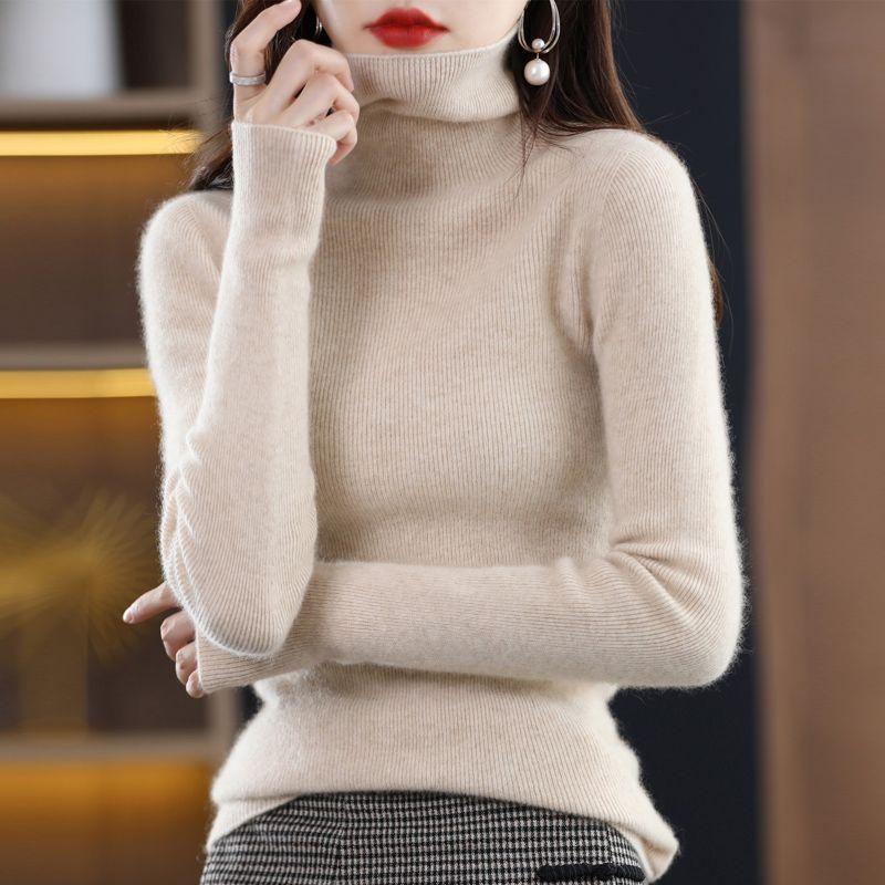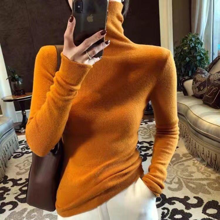 가을 겨울 인기 솔리드 컬러 레귤러 두꺼운 긴팔 따뜻한 스택 칼라 슬림핏 이너웨어 풀오버 니트 베이스 레이어