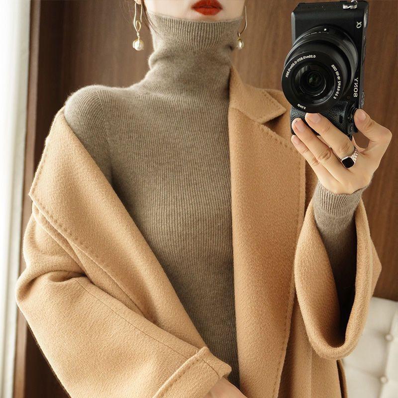 가을 겨울 인기 솔리드 컬러 레귤러 두꺼운 긴팔 따뜻한 스택 칼라 슬림핏 이너웨어 풀오버 니트 베이스 레이어스토어 가기