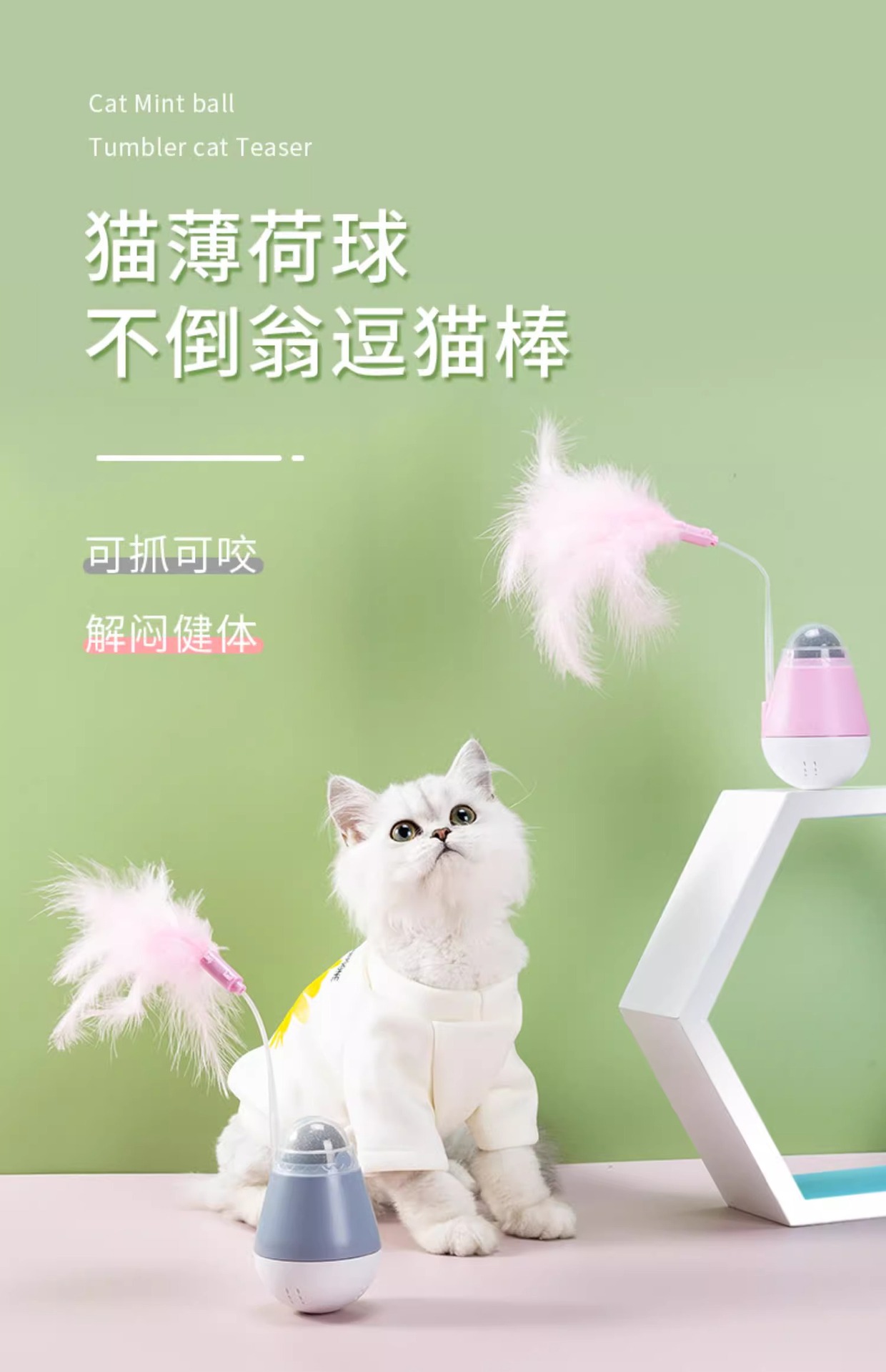电动逗猫玩具不倒翁逗猫棒自嗨解闷神器耐咬羽毛小幼猫狗宠物用品