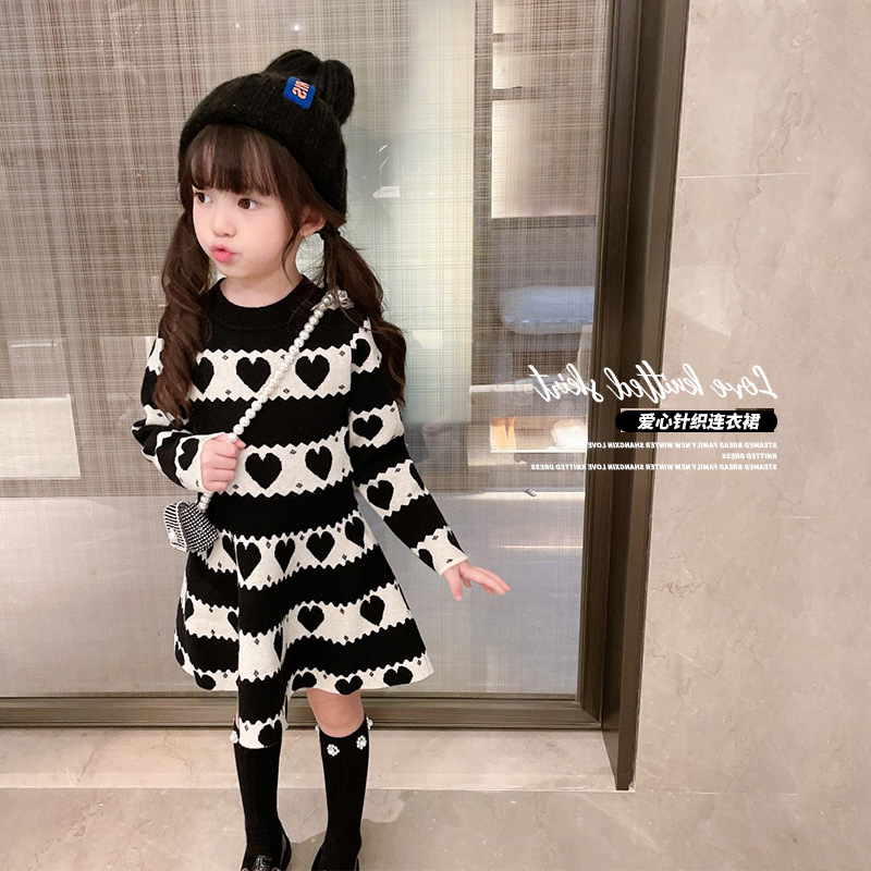소녀 니트 원피스 2025 봄 새 어린이 느슨한 긴팔 스웨터 아기를위한 원피스스토어 가기